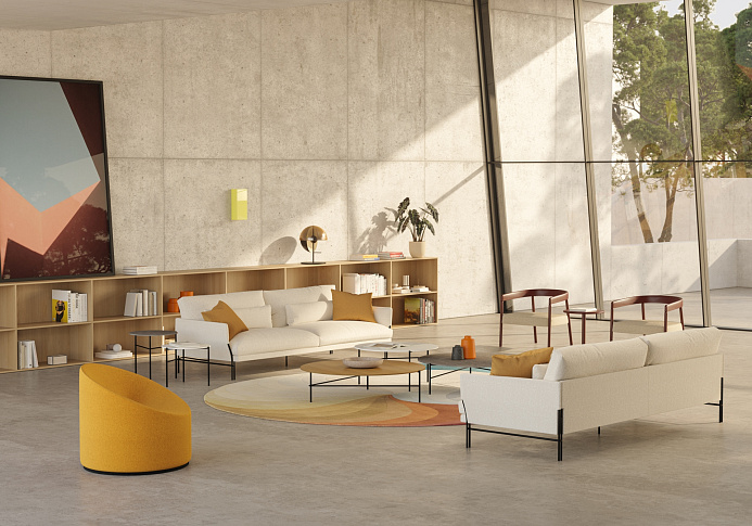 Величественный, сочетает в себе комфорт и легкость, основанный на мягком корпусе, который уравновешивает прямые и извилистые линии, и приглашает вас насладиться моментом близости, отдыха или дружеской беседы в обстановке, которая источает изысканность и очарование. Две функции, позволяющие ему естественным образом вписаться в любой дом или общественное пространство. Этот диван сочетает в себе элегантные, чистые линии с комфортом, обеспечиваемым толстой и мягкой зоной отдыха, качества, которые также передает спинка дивана. С эстетической точки зрения одной из его наиболее отличительных особенностей является видимое основание, состоящее из двойной системы ножек, которая подчеркивает легкость и прочность конструкции.