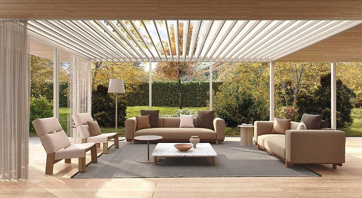 Это пример модульного дивана в чистом виде. Его ортогональная геометрия основана на прямоугольной модульной конструкции, что означает, что его можно легко адаптировать к любой ситуации и оптимизировать пространство, в котором он находится. Каждый модуль можно разобрать и реорганизовать, создавая новые области применения и конфигурации. Дизайн эстетически минималистичен, с намеренно увеличенными деталями. С другой стороны, декоративные элементы сознательно не были подчеркнуты, чтобы подчеркнуть различные сочетания тканей, цветов и тщательно подобранных деталей. “Моло, или пирс по-английски, джете по-французски и эмбаркадеро по-испански, - это сооружение, построенное на берегу океана, моря, озера или реки, которое простирается от суши над водой; место швартовки лодок, отдыха между поездками и убежища от набегающих волн. Возвращение на твердую землю и к людям. Molo by Kettal предлагает место для расслабления и воссоединения”..