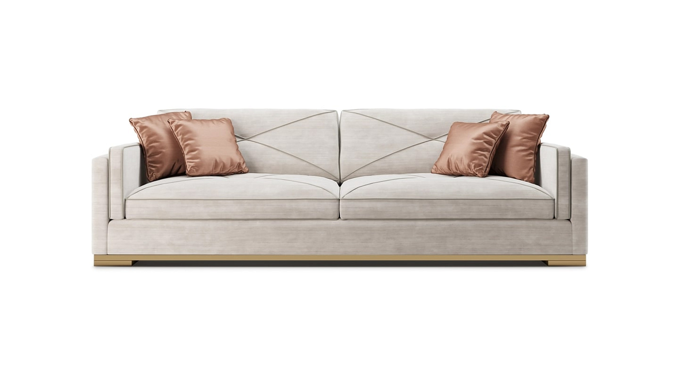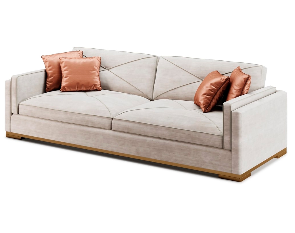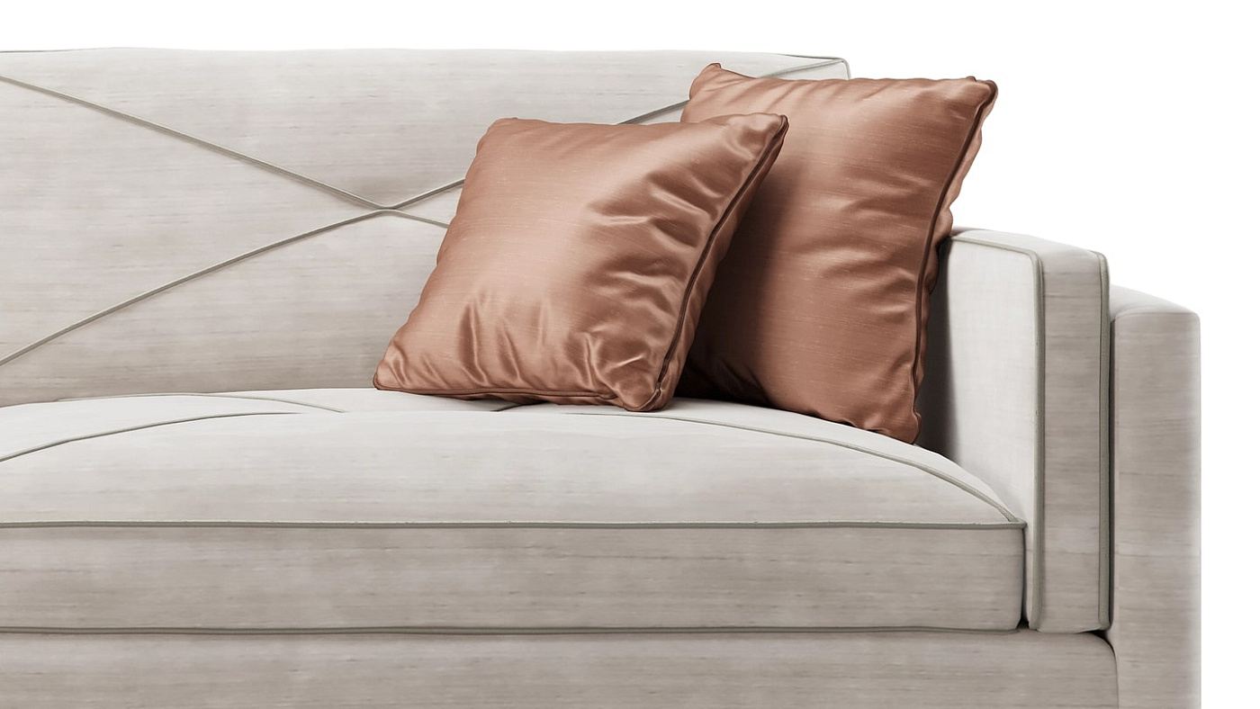 Пухлые подушки стильного московского дивана свободного покроя придают угловатому дизайну роскошный уровень комфорта, а переливающееся металлическое основание придает ему щегольства. Для завершающего штриха мастера-обойщики FRATO выделили сиденье контрастной окантовкой, создав узор в виде буквы X, который придает дизайну индивидуальность.