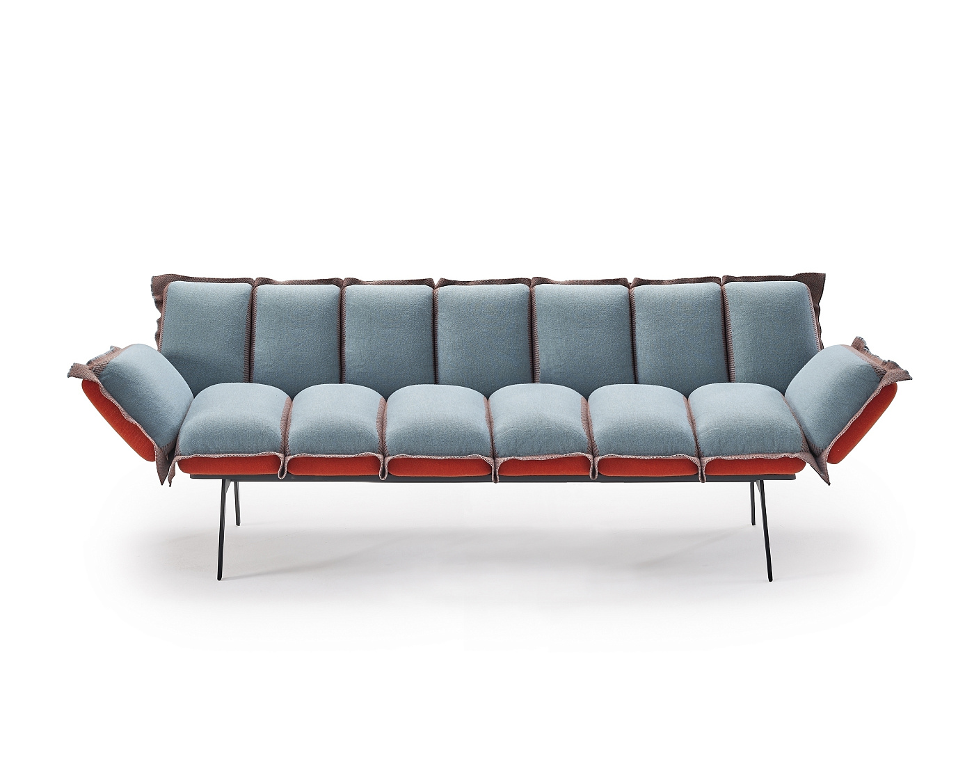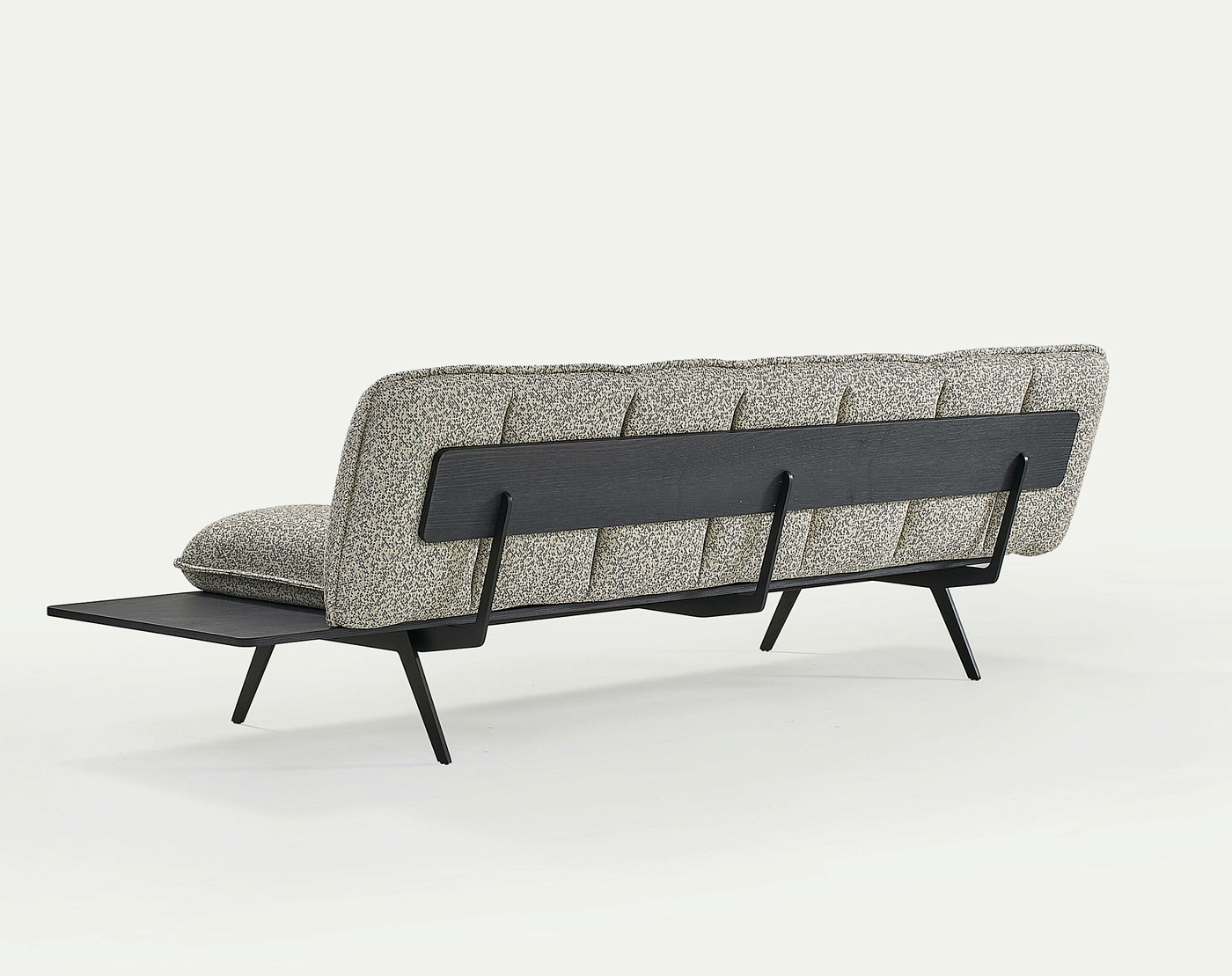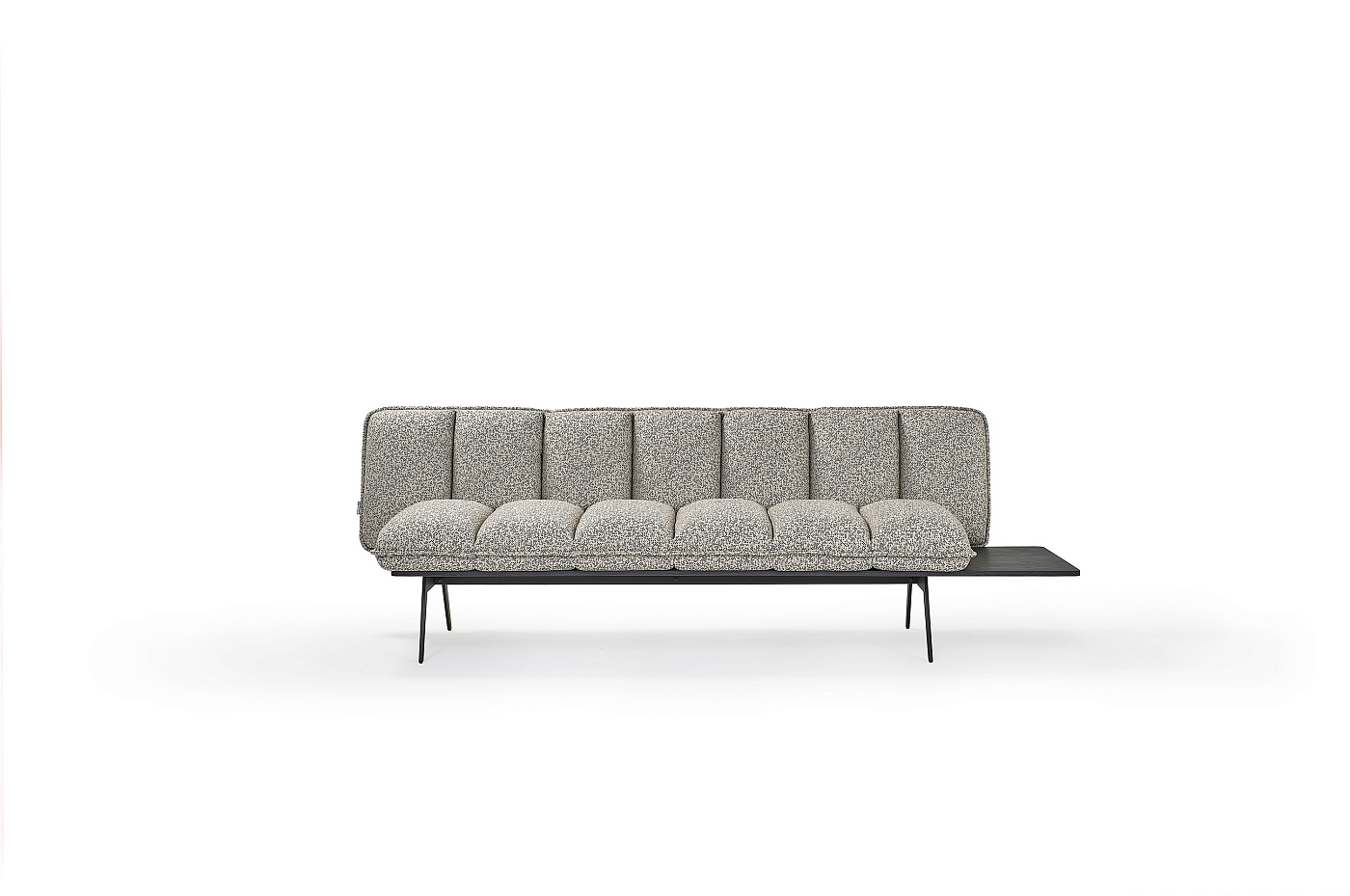 Модульность Next Stop основана на схеме сидений, состоящей из трех подушек, соединенных текстильным чехлом, который служит мерой для определения посадочных мест кресел, диванов и модулей. Любой из них может включать в себя подлокотники или тумбочки различных размеров. Семейство дополняют скамейки на 1 и 2 посадочных места, которые вместе с модулями позволяют создавать бесконечное количество композиций. Кроме того, к любой детали можно добавить центральный, концевой или угловой стол.