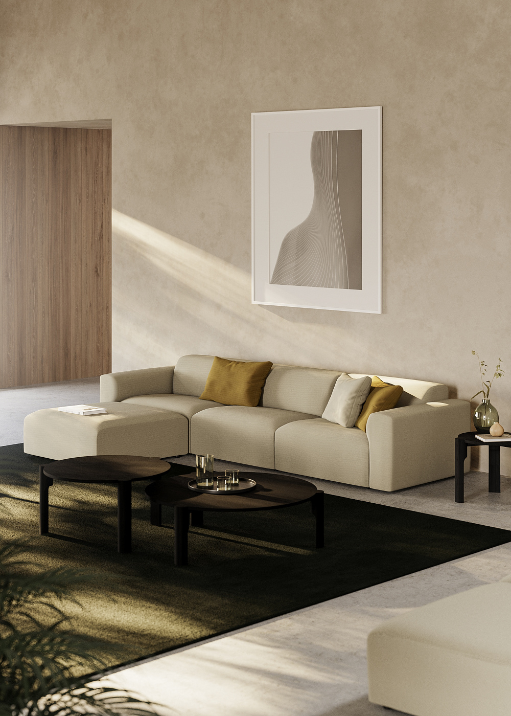 Модульный 2-местный диван Martina цвета экрю с правым шезлонгом 230 см