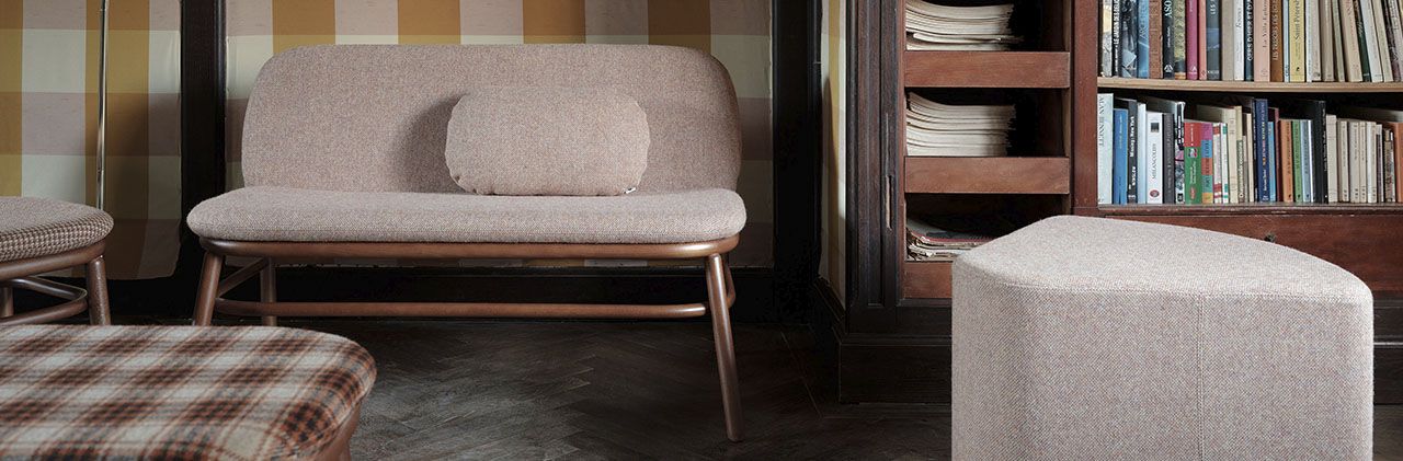 Двухместный диван из стальной шерсти, форма спинки которого соответствует объемам и пересекается со структурой, придавая ему уникальный и особый вид. В двухместном исполнении с подлокотниками или без них, с высокой или низкой спинкой и множеством обивок.