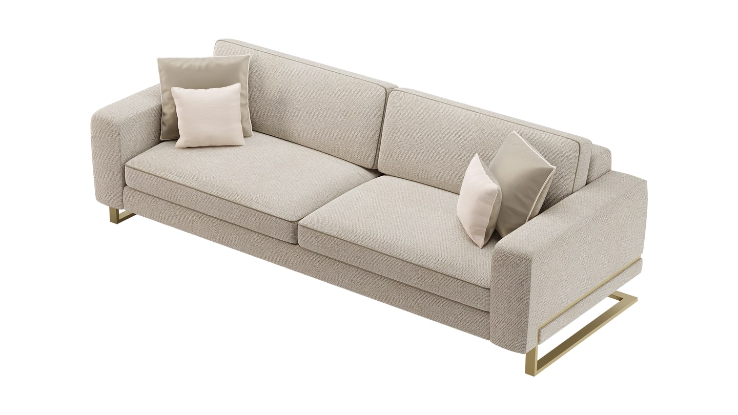 Низкое сиденье, мягкие края и подушки свободного покроя - все это отделано фирменной окантовкой FRATO - характеризуют диван TRIBECA, но есть одна деталь, которая действительно отличает этот дизайн, и это его консольное основание. Изготовленный из металла, он создает подлинный вау-фактор.