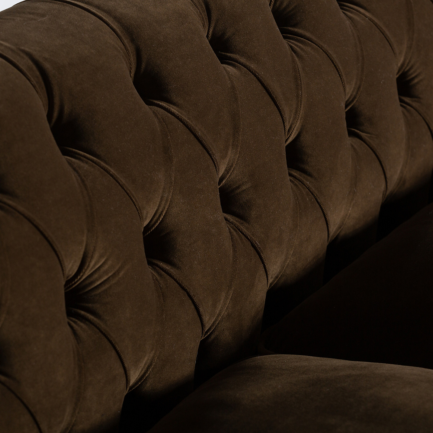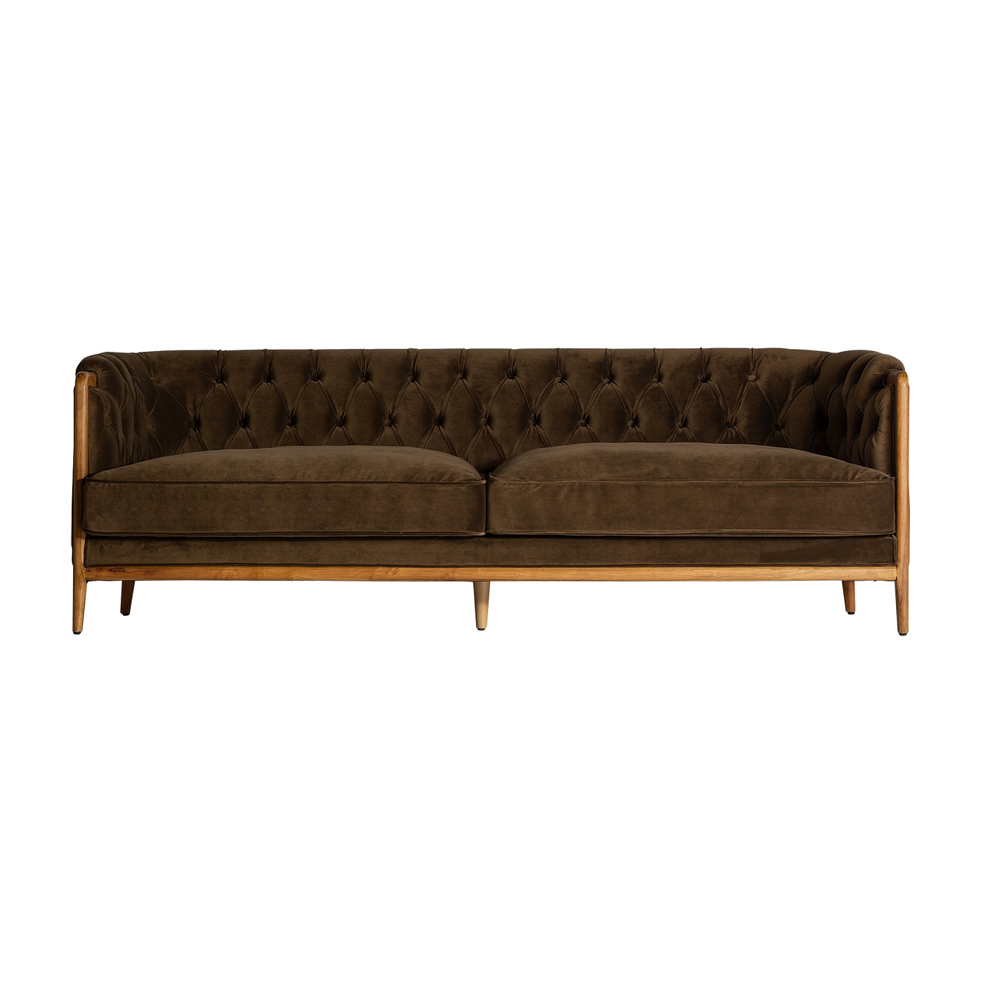 Диван на пуговицах VELBURG, зеленого цвета, колониальный стиль. Изготовлен из акрила в сочетании с каучуковым деревом. Изделие съемное. Ширина: 228 см, Глубина: 88 см, Высота: 78 см