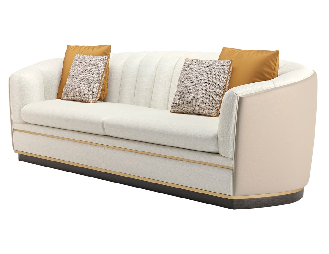 Шикарный диван VENICE, выполненный в классическом стиле смокинга, демонстрирует мастерство мастеров FRATO, которые органично сочетают изогнутую спинку с глубокими подушками и контрастную ткань сзади. Металлическая отделка у основания придает изделию приятное отличие.