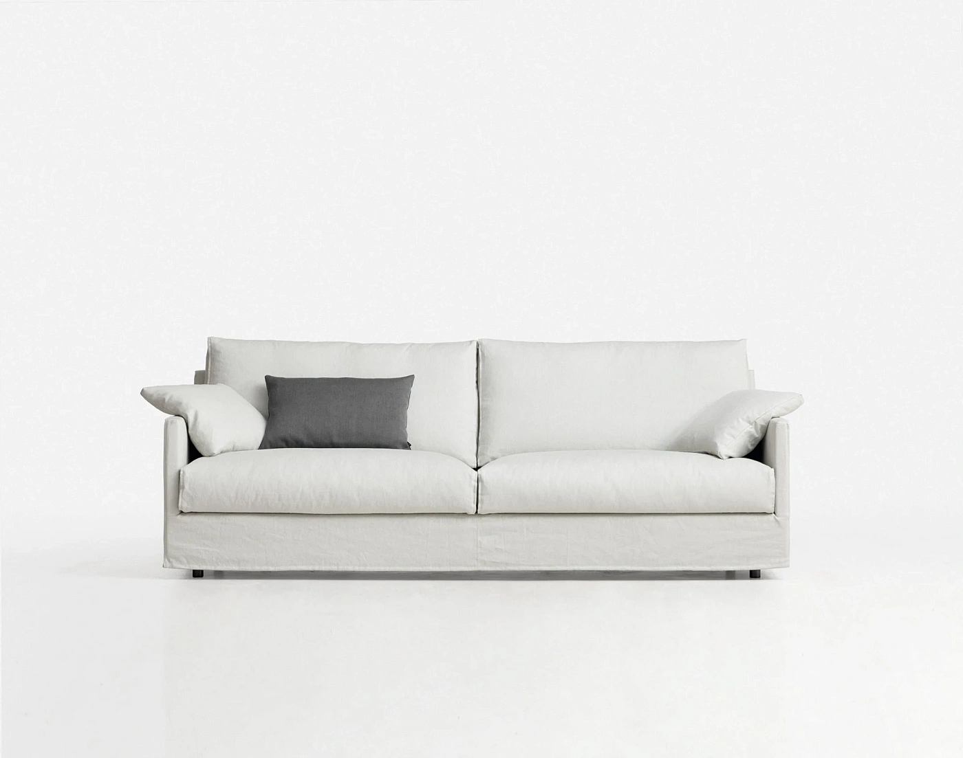 Беззаботный дух, характерный для дивана June, выражается в нежестком чехле, который свободно покрывает его конструкцию, и подушках, придающих ткани более естественный вид. Подушки, которые лежат на его тонких руках в качестве подлокотников, усиливают ощущение безмятежности и комфорта.
