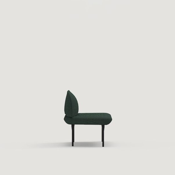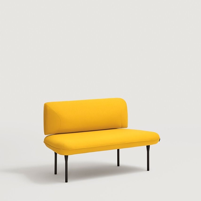 Короткий обитый модуль сиденья с небольшой спинкой (A) и металлическими ножками. Insula — это модульная система диванов, состоящая из двух размеров сиденья (короткого и длинного) и 3 спинок (A, B и C), объединенных и соединенных вместе со столешницей разных форм и материалов.>
