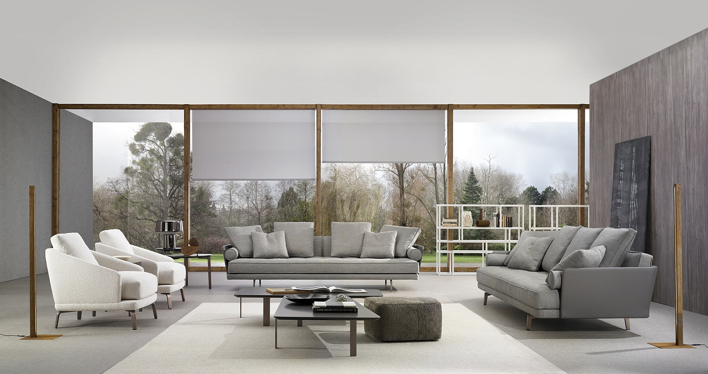 Vermont сочетает в себе классическое сиденье на пуговицах в традиционном стиле с современным элегантным дизайном. Благодаря использованию прочных ножек в этом изящном линейном дизайне сидений достигается плавающий эффект. Для всей коллекции характерно непрерывное расположение сидений в классическом стиле с пуговицами, обрамленное кантом, который ограничивает базовый формат. Непрерывное сиденье позволяет использовать пространство для сидения в неформальной обстановке, где удобные квадратные подушки опираются на подушки спинки, все из которых имеют кант, подчеркивающий их формы. Система сидений состоит из множества характерных элементов, таких как шезлонг, и может использоваться как в качестве отдельных геометрических элементов, так и в различных комбинациях для создания привлекательных решений