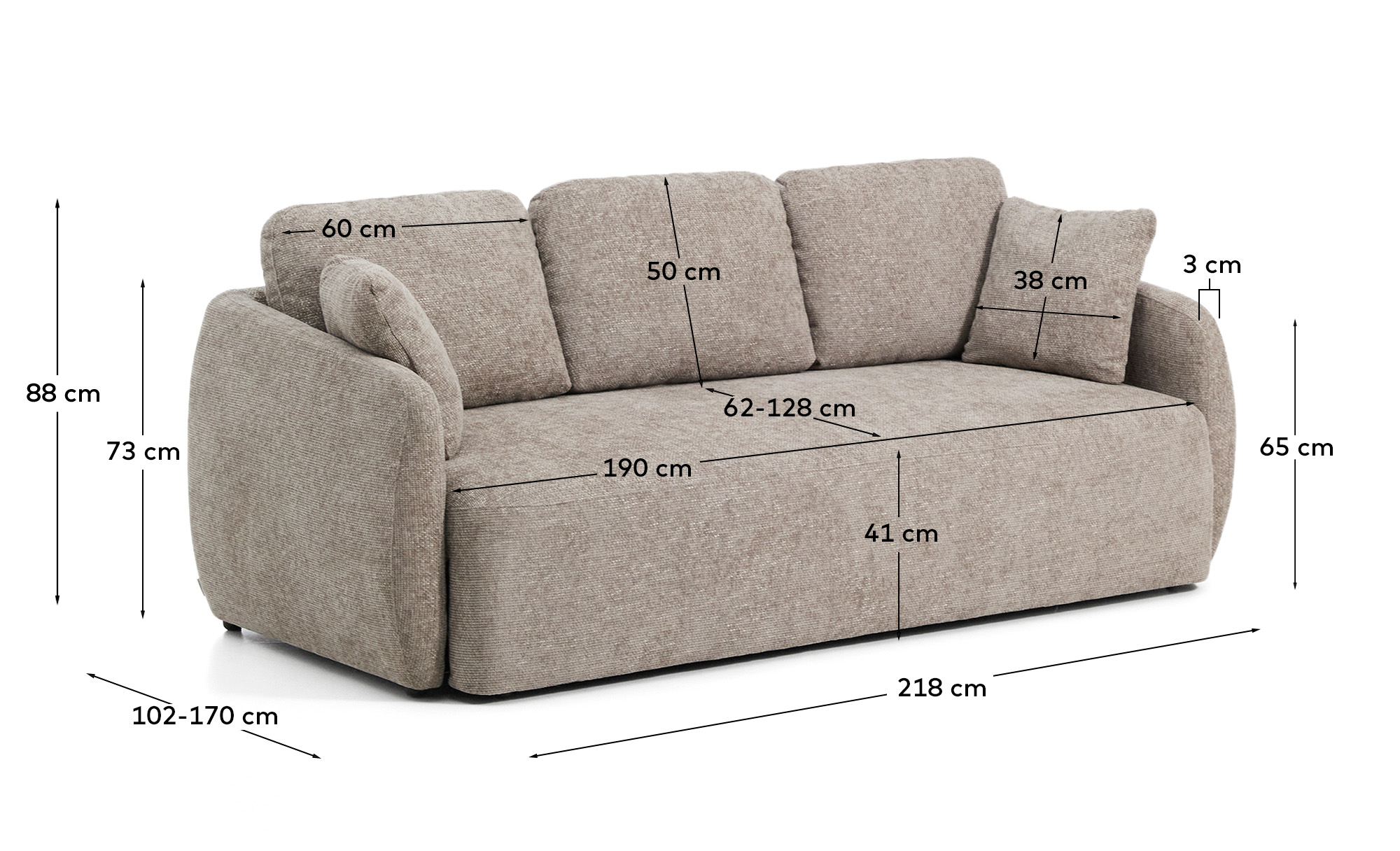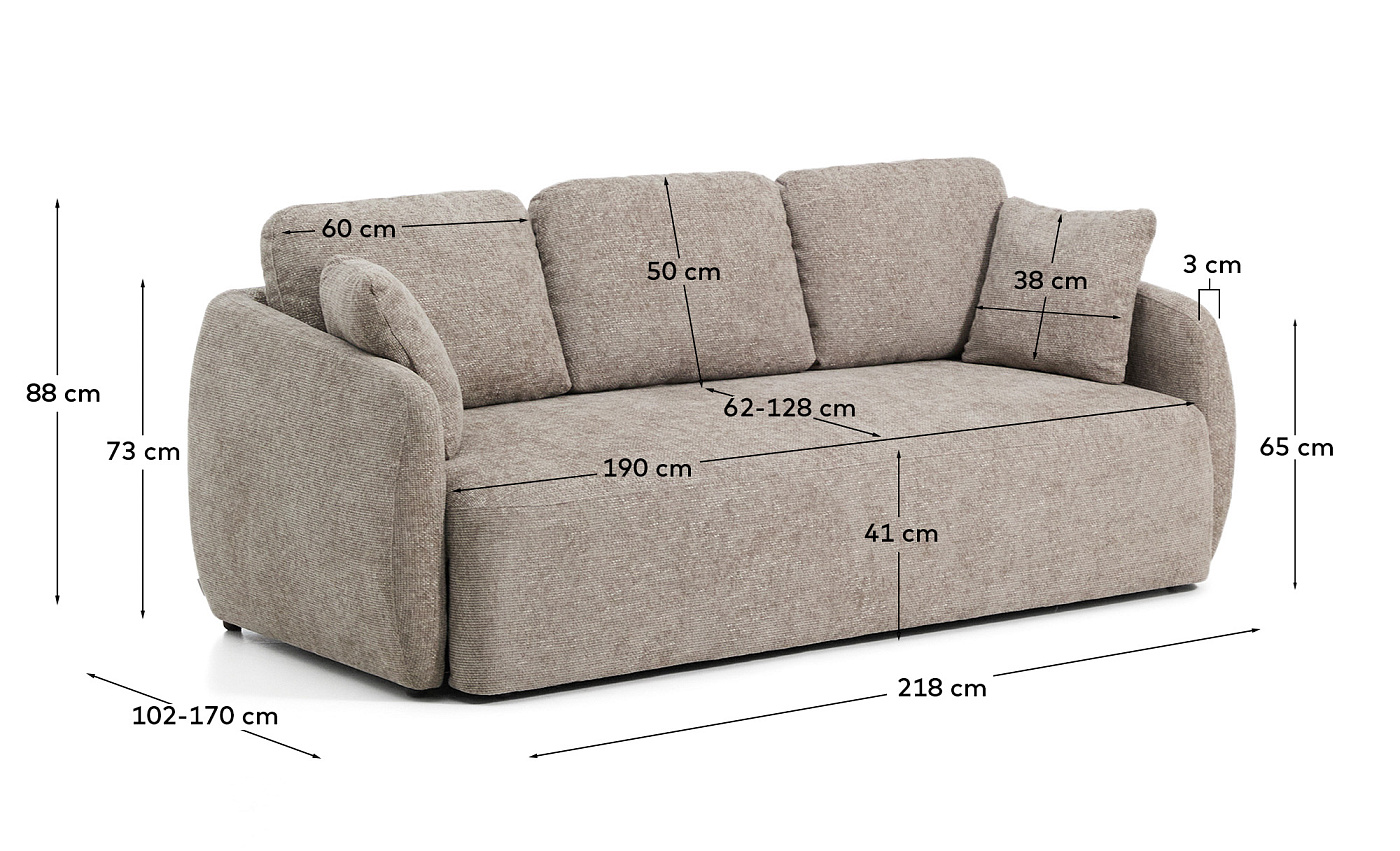 Трехместный диван-кровать Laira из бежевой синели, 218 см