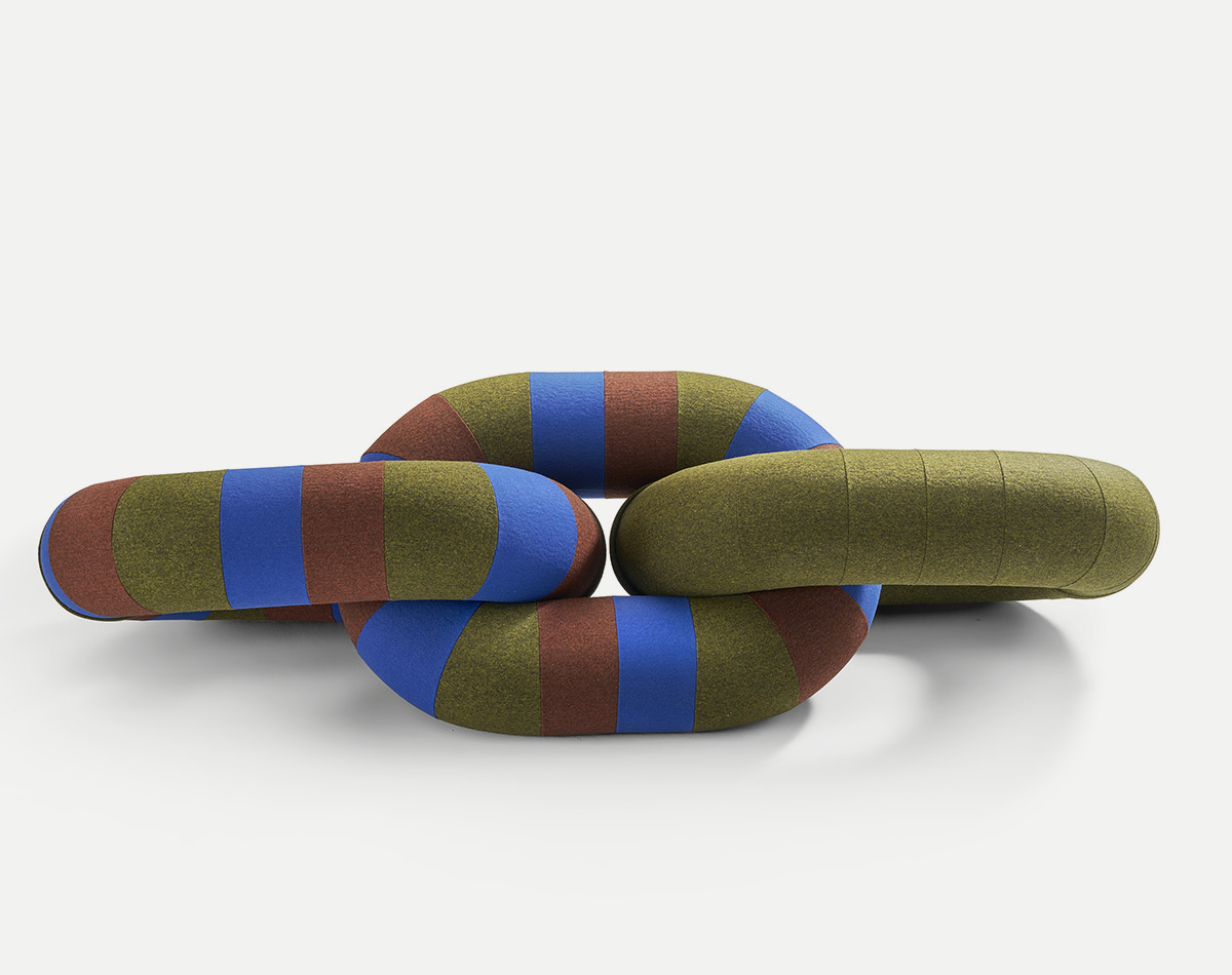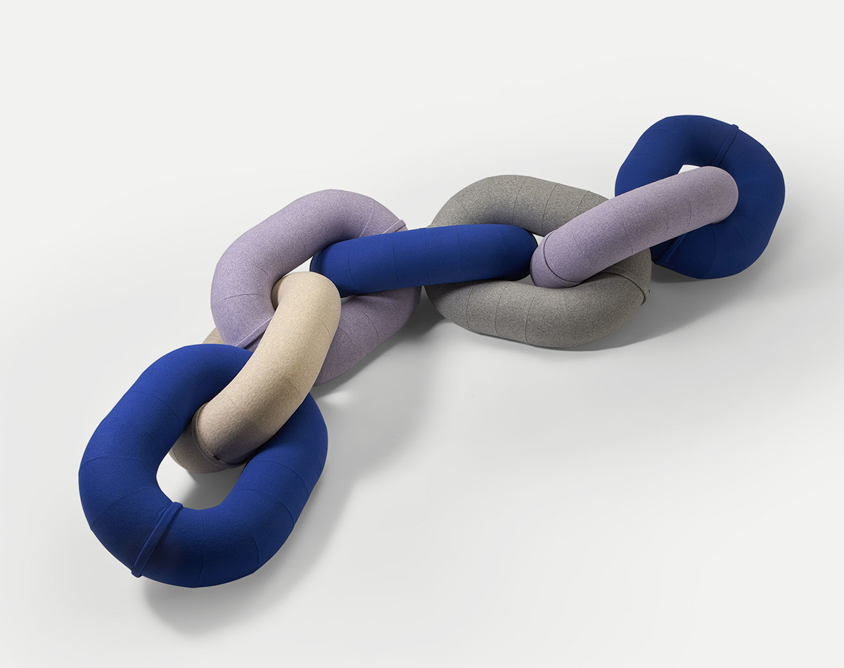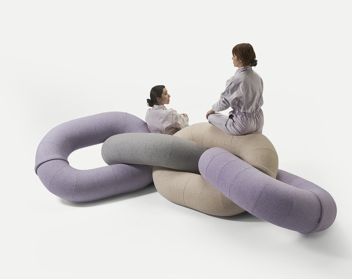 Raw Color бросает вызов любой условности, связанной с отдыхом и общением: почему сиденье не может быть произведением искусства, когда оно не используется? Этот творческий дуэт переосмысливает то, как мы сидим, на основе извилистых объемов цепочки. Масштаб здесь играет ключевую роль, так как он может превратить повседневный предмет в скульптуру. Скульптурные пуфы Link являются результатом размышлений об альтернативных решениях для меблировки. Разрушая все формальные границы, их подход, несомненно, свободен, и это вызывает анархическое сидение. В любом случае веселье гарантировано. Что касается отделки, то каждое изделие Link доступно в тщательно подобранной гамме из 6 однотонных цветов, в нескольких многоцветных версиях: многоцветный полужирный и многоцветный пастельный, а также в коллекции образцов Kvadrat x Febrik Sprinkles .