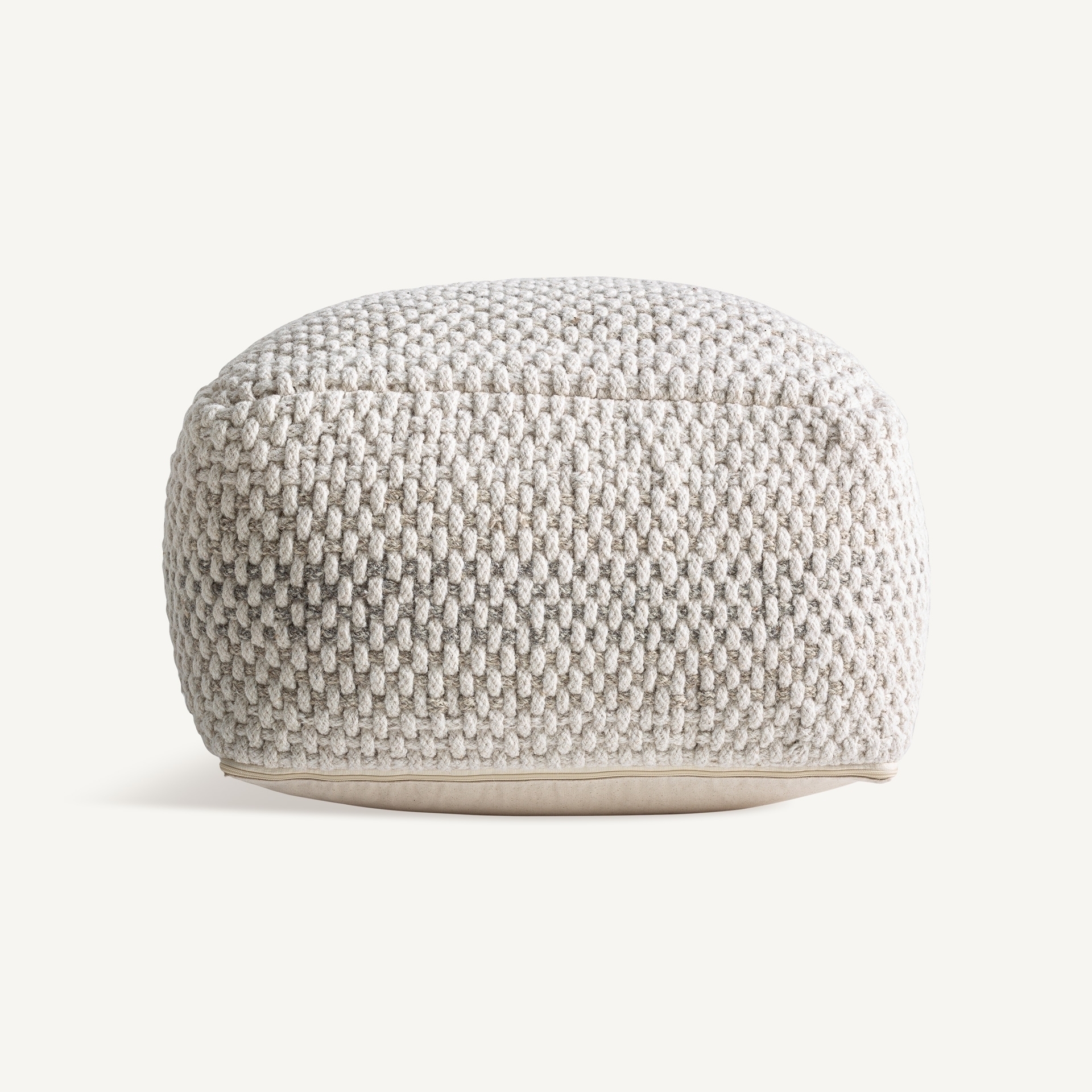Пуф Koto в классическом стиле, выполнен из нежно-белой шерсти в сочетании с серым поролоном. Чехол съёмный. Ширина: 65 см, Глубина: 65 см, Высота: 33 см