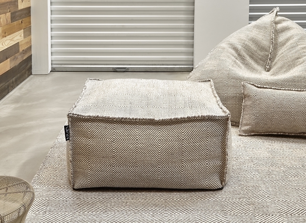 Чехол дизайнерского пуфа Sail соткан в старинной индийской технике дхури, которая раскрывает потенциал шерстяной пряжи с неожиданной стороны. Результат смотрится сдержанно, свежо и урбанистично.