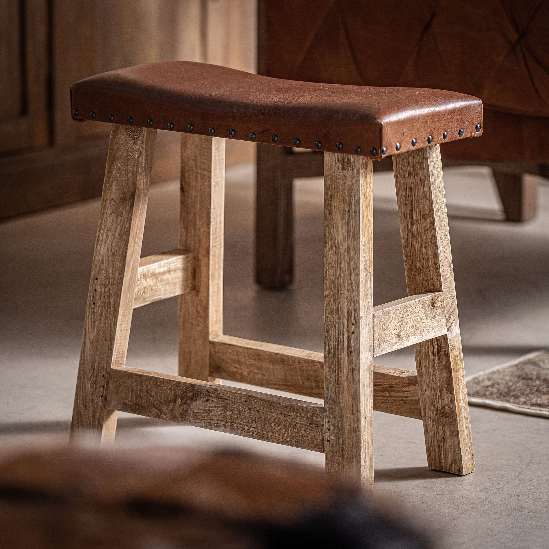 Подставка для ног VAYOR, натуральный цвет, северный/скандинавский стиль. Изготовлен из дерева манго в сочетании с кожей и поролоном. Ширина: 45 см, Глубина: 21 см, Высота: 47 см.