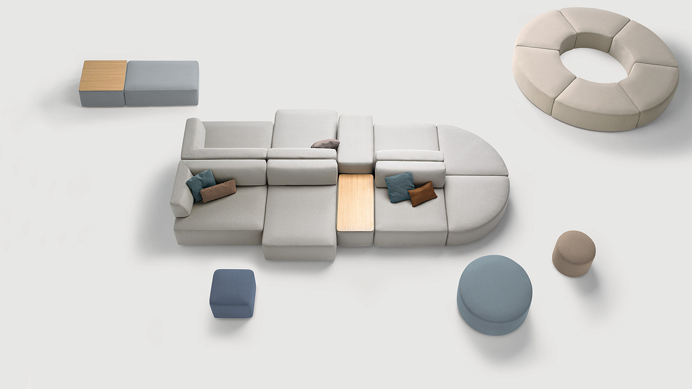 Коллекция сидений ENTROPY предлагает широкий выбор модульных элементов разных размеров и форм, которые можно свободно комбинировать для создания бесконечных индивидуальных конфигураций.