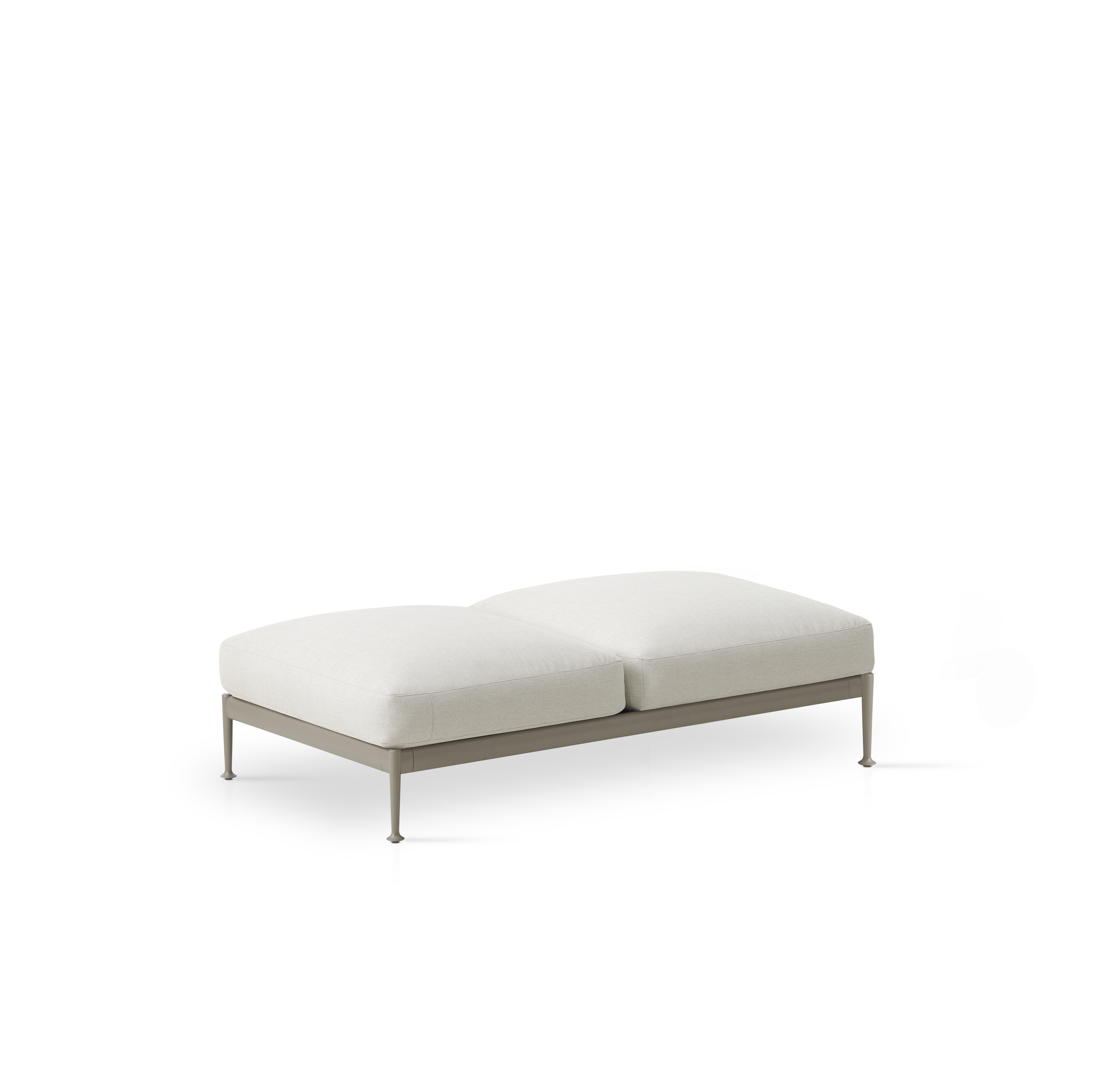 Банкетка с конструкцией из высокопрочного алюминиевого профиля и ножками из литого алюминия, покрытого полиэфирной порошковой краской. Возможность персонализации благодаря широкому выбору технических тканей, полностью подходящих для использования на открытом воздухе.