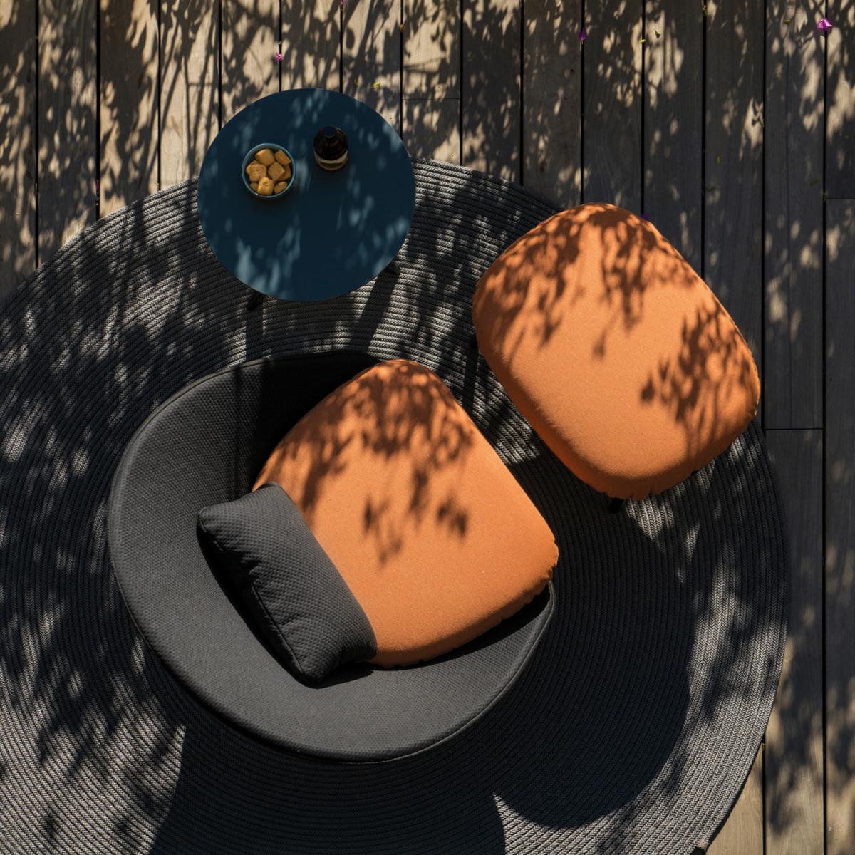Подставка для ног изготовлена из алюминиевой трубы с высоким сопротивлением. Возможность индивидуальной настройки благодаря широкому выбору технических тканей, полностью подходящих для использования на открытом воздухе.