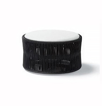 Круглый пуф. Каркас из лакированного алюминия, запеченного эпоксидной смолой, плетение из полиэфирной веревки.