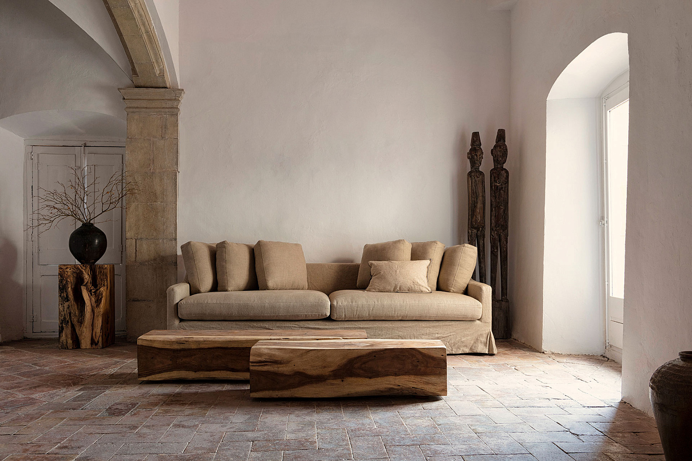 Набор скульптур 2, натуральный состаренный цвет, этнический стиль. Изготовлен из тикового дерева.