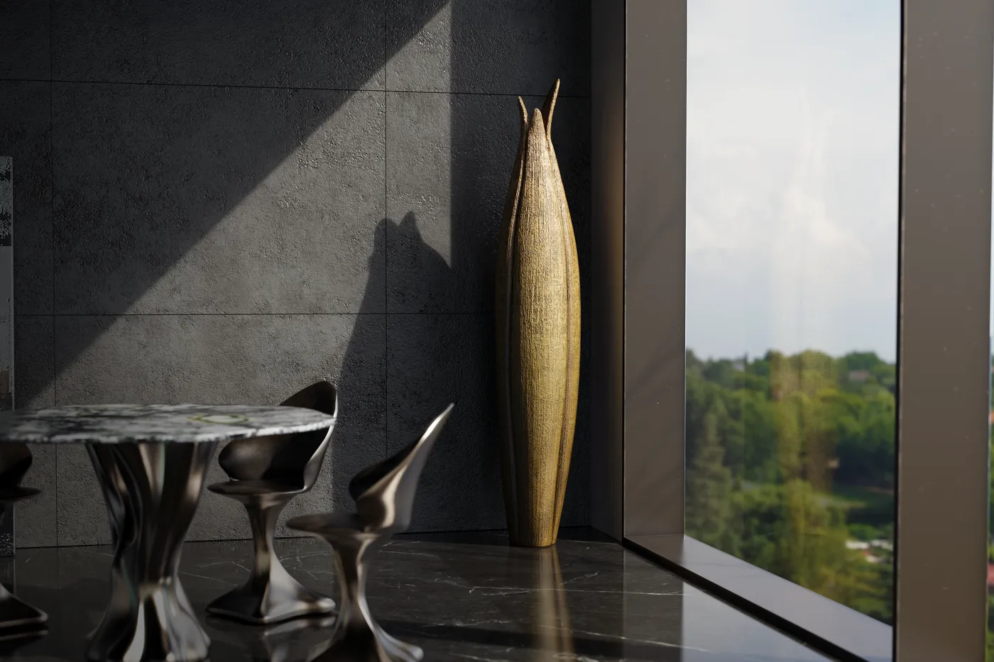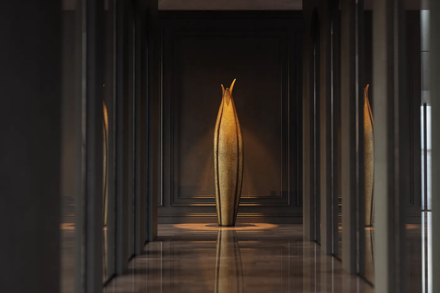 Скульптура Agave — это поразительное произведение, призванное улучшить атмосферу любой комнаты. Ее высокая и стройная форма отличается плавными линиями, которые источают ощущение элегантности и изысканности. Благодаря отделке из листового золота и текстурированной поверхности эта скульптура может похвастаться уникальной и пленительной эстетикой. Скульптура Agave легко сочетает в себе артистизм и мастерство, что делает ее выдающимся центром внимания, который добавляет нотку роскоши в ваше пространство.