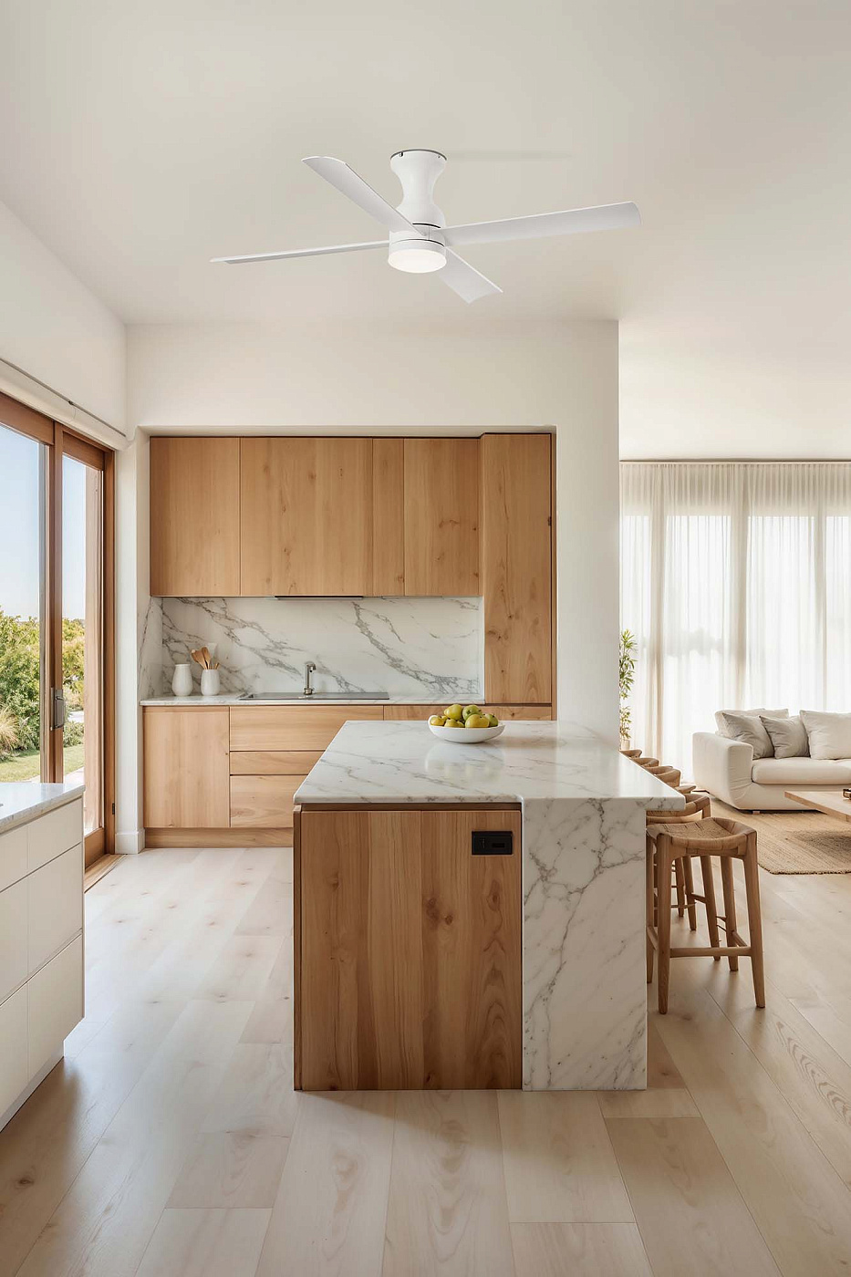 FRASER - это длинный белый потолочный вентилятор, идеально подходящий для помещений от 13 до 17 футов 6 м². Этот вентилятор с двигателем постоянного тока с простым и вневременным дизайном управляется дистанционно. Он имеет 6 регулируемых скоростей с потреблением 7-10-13-19-25-33 Вт и 95-112-129-146-163-180 оборотов в минуту в зависимости от скорости. FRASER имеет обратную функцию.