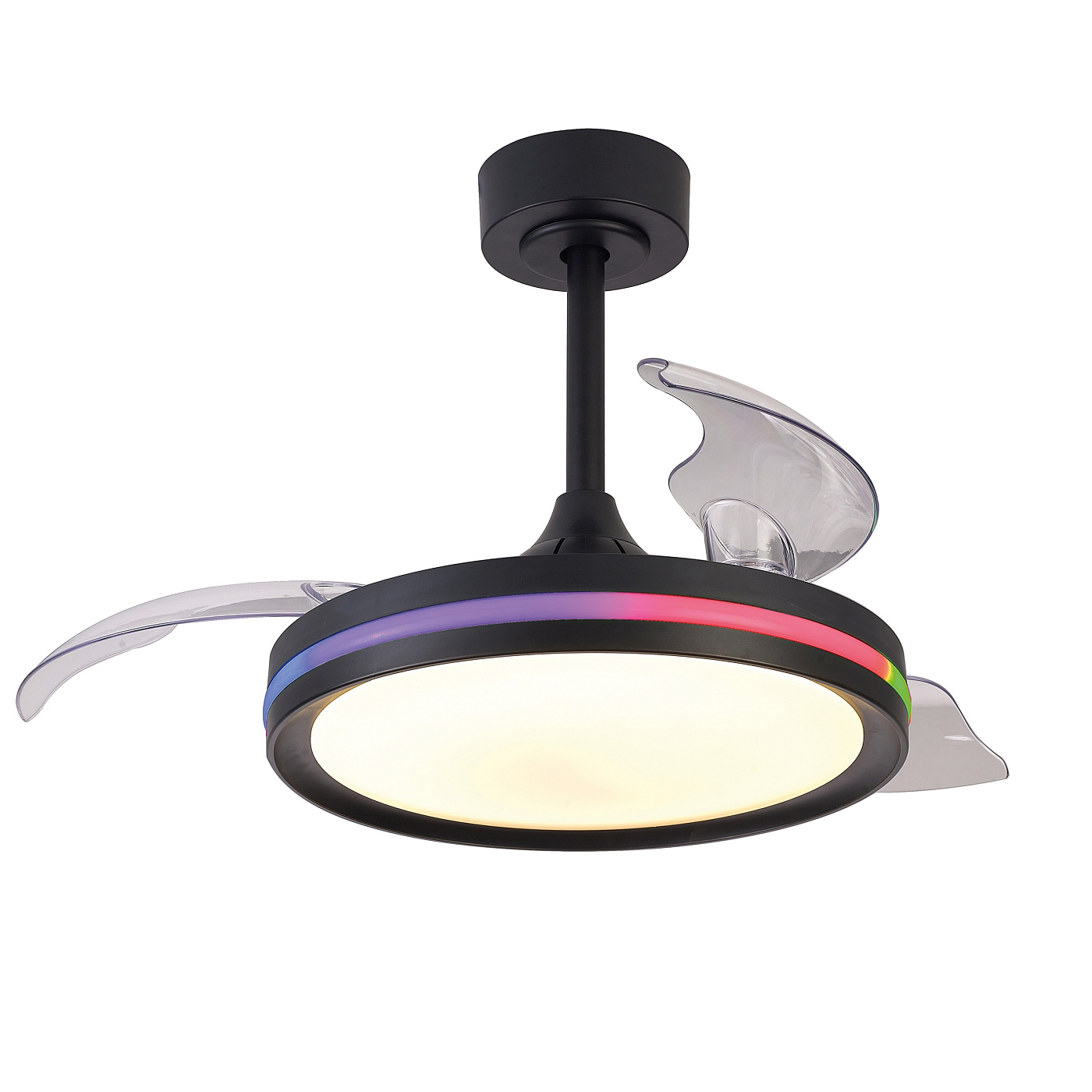 NORTH - это коллекция универсальных круглых светодиодных светильников с функцией дистанционного управления и регулировкой высоты. Главной особенностью данной коллекции являются трансформирующиеся лопасти вентилятора, которые раскрываются над светильником. С помощью пульта пользователь может управлять яркостью и цветовой температурой освещения, скоростью вращения вентилятора, а также открывать или закрывать лопасти. Каждый светильник коллекции способен менять свою цветовую температуру от 3000K до 6500К. Такая свобода в использовании дает возможность менять настроение и образ комнаты с помощью пары движений. Светильники NORTH станут идеальным световым решением для просторных комнат, которые служат для ряда различных функций, например, как рабочее пространство днем и зона отдыха вечером. Лаконичный дизайн коллекции впишется в широкий спектр интерьеров от кухни до офиса. Светильники доступны в двух цветовых вариантах: белый и черный. Коллекция оснащена RGB подсветкой по периметру светильника.