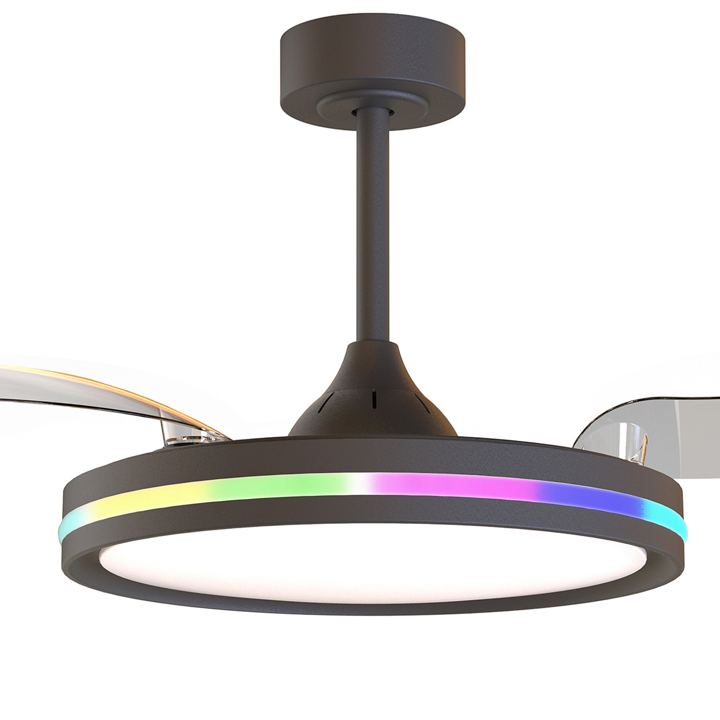 RAFAGA - это коллекция универсальных круглых светодиодных светильников с функцией дистанционного управления и регулировкой высоты. Главной особенностью данной коллекции являются трансформирующиеся лопасти вентилятора, которые раскрываются над светильником. С помощью пульта пользователь может управлять яркостью и цветовой температурой освещения, скоростью вращения вентилятора, а также открывать или закрывать лопасти. Каждый светильник коллекции способен менять свою цветовую температуру от 3000K до 6500К. Такая свобода в использовании дает возможность менять настроение и образ комнаты с помощью пары движений. Светильники RAFAGA станут идеальным световым решением для просторных комнат, которые служат для ряда различных функций, например, как рабочее пространство днем и зона отдыха вечером. Лаконичный дизайн коллекции впишется в широкий спектр интерьеров от кухни до офиса. Светильники доступны в двух цветовых вариантах: белый и черный. Коллекция оснащена RGB подсветкой по периметру светильника.
