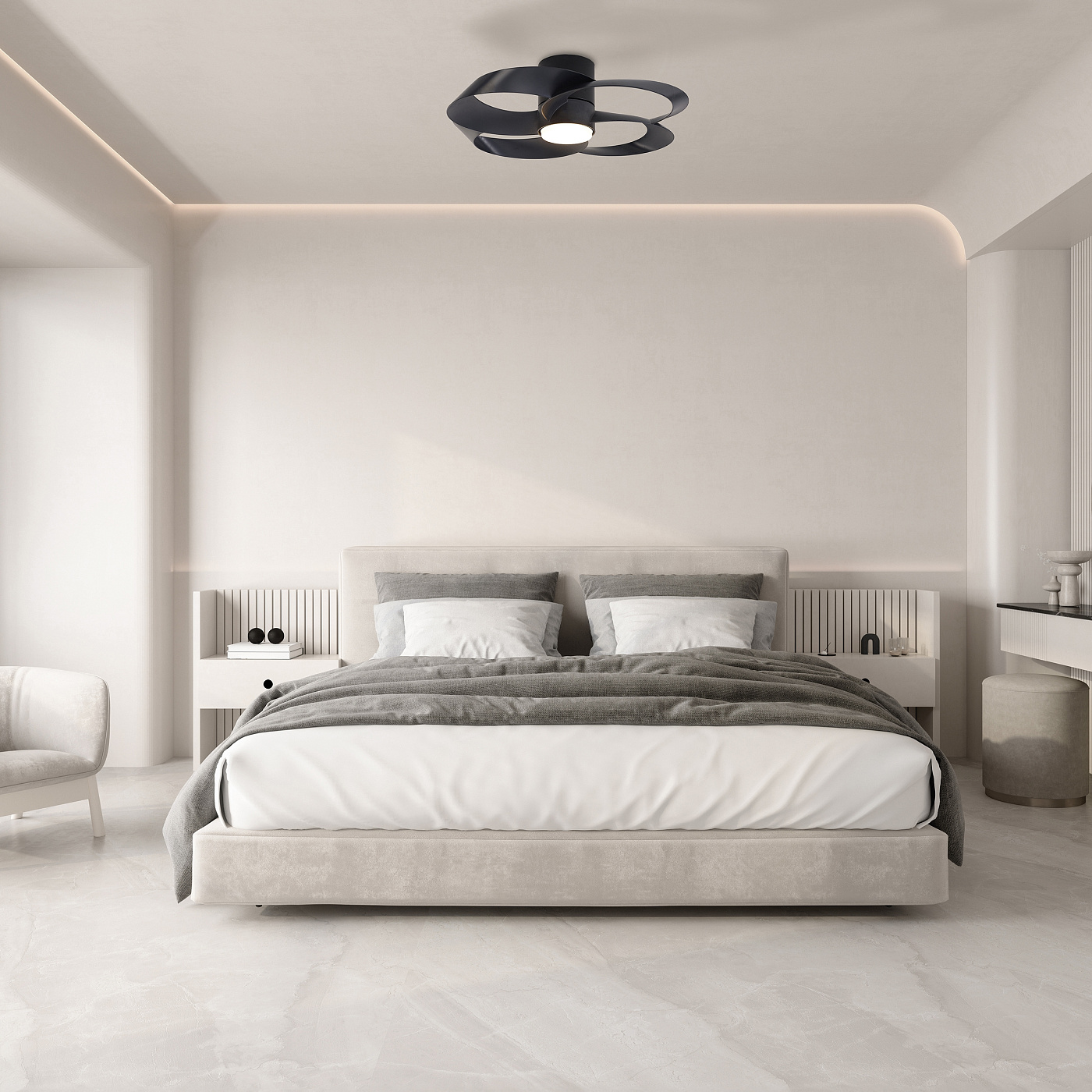 ROSE - это минималистичный, но мультифункциональный предмет интерьера. С этой коллекцией Mantra привносит инновации в сектор вентиляционных элементов, добавляя оригинальность и изобретательность с помощью дизайна. Светильник ROSE способен обеспечить прохладную вентиляцию и обогрев, также как и эффектное освещение комнаты. В то время как вентилятор является идеальным дополнением к любому интерьеру в летнее время, “инверторная функция” (в положении встречного вращения) позволяет собрать горячий воздух и равномерно распределить его по комнате зимой. Коллекция идеально подходит для спален, благодаря своему тихому, но эффективному двигателю. ROSE впишется в спокойные и размеренные интерьеры с фокусом на функциональности и минимализме. Кроме того, благодаря возможности ROSE устанавливать различные интенсивности света и вентиляции, он может быть размещен в больших помещениях, таких как гостиная или офис, кухня или игровая зона. Все настройки могут быть изменены с помощью пульта дистанционного управления. Выпускаются в трех вариантах цвета: белый, черный, под дерево.
