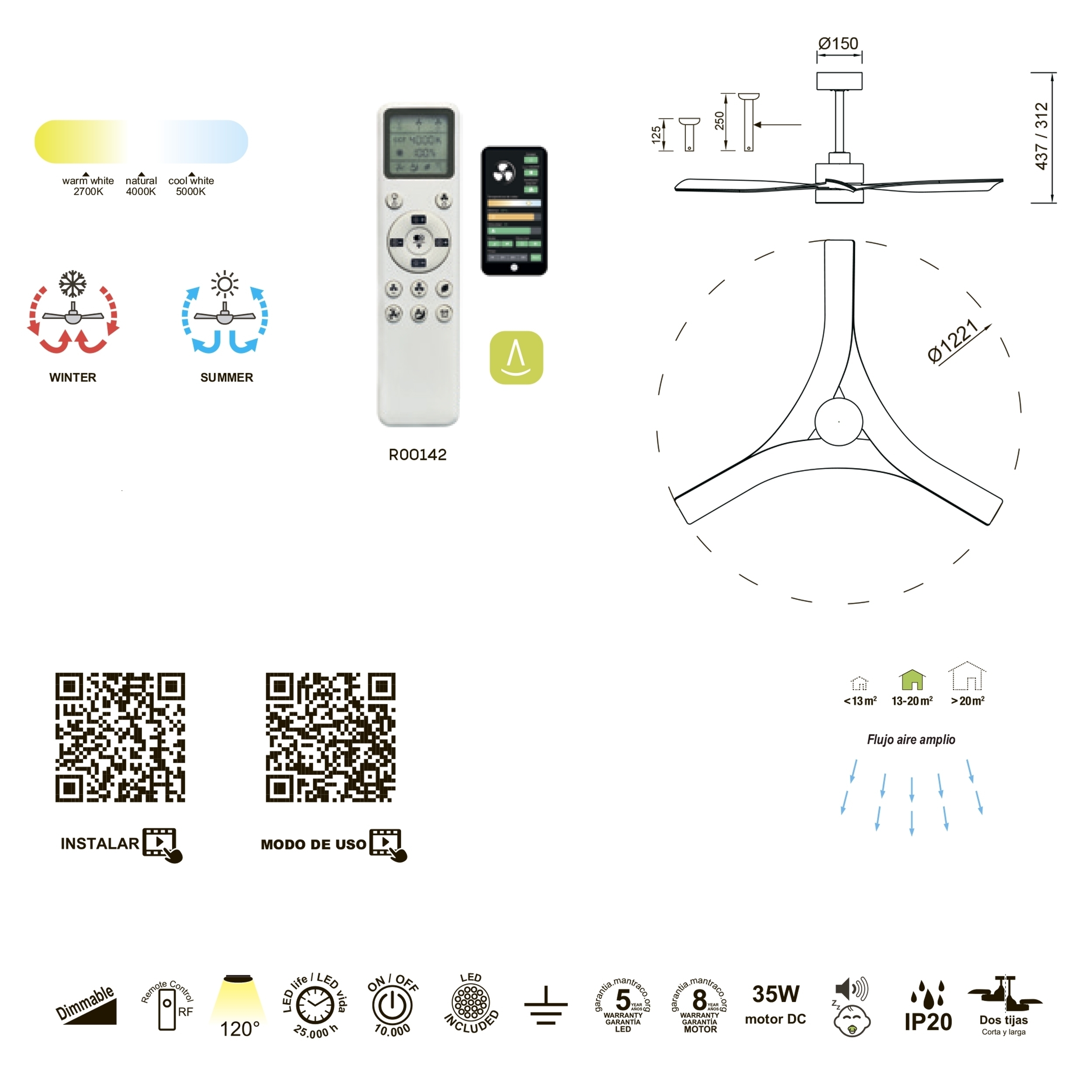 THAI - это минималистичный, но мультифункциональный предмет интерьера. С этой коллекцией Mantra привносит инновации в сектор вентиляционных элементов, добавляя оригинальность и изобретательность с помощью дизайна. Светильник THAI способен обеспечить прохладную вентиляцию и обогрев, также как и эффектное освещение комнаты. В то время как вентилятор является идеальным дополнением к любому интерьеру в летнее время, “инверторная функция” (в положении встречного вращения) позволяет собрать горячий воздух и равномерно распределить его по комнате зимой. Коллекция идеально подходит для спален, благодаря своему тихому, но эффективному двигателю. THAI впишется в спокойные и размеренные интерьеры с фокусом на функциональности и минимализме. Кроме того, благодаря возможности THAI устанавливать различные интенсивности света и вентиляции, он может быть размещен в больших помещениях, таких как гостиная или офис, кухня или игровая зона. Все настройки могут быть изменены с помощью пульта дистанционного управления. Выпускаются в трех вариантах цвета: белый, черный, под дерево.