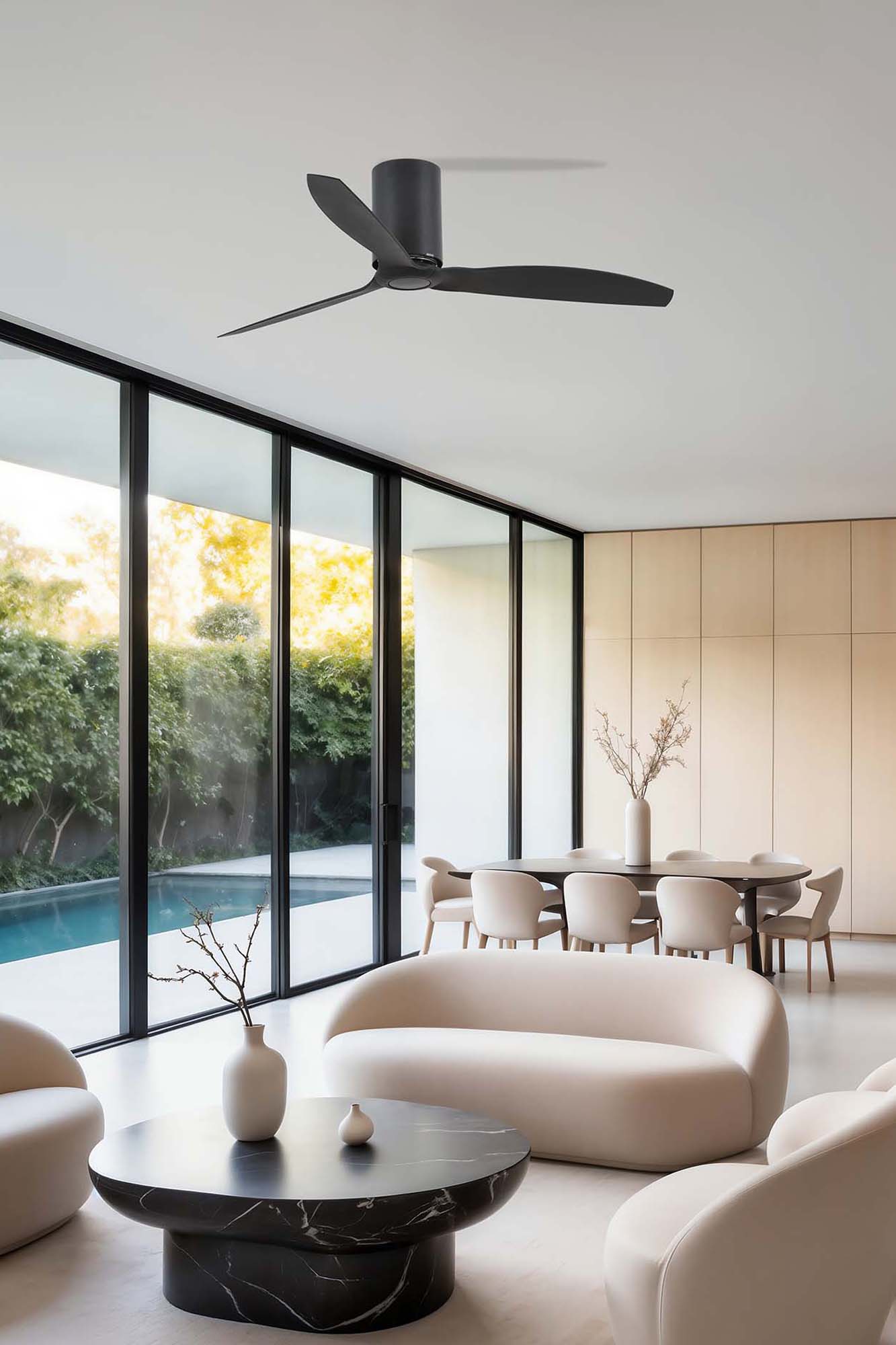 MINI TUBE FAN - это очень современный потолочный вентилятор со светом в индустриальном стиле. Он идеально подходит для помещений площадью от 13 до 17 футов 6 квадратных метров и оснащен двигателем постоянного тока с низким энергопотреблением. Он имеет 6 регулируемых скоростей с потреблением 4-6-9-13-22-32 Вт и 51-77-103-129-155-185 оборотов в минуту в зависимости от скорости. Этот вентилятор с матово-черным покрытием и черными лопастями имеет реверсивную функцию, поэтому вы можете использовать его зимой, повышая эффективность вашей системы отопления. Действие с помощью пульта дистанционного управления в комплекте.