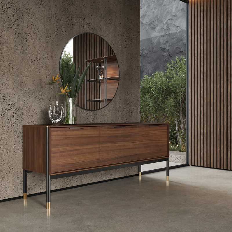 Сервант BENISSA шпон ореха F, черный матовый лак, латунь