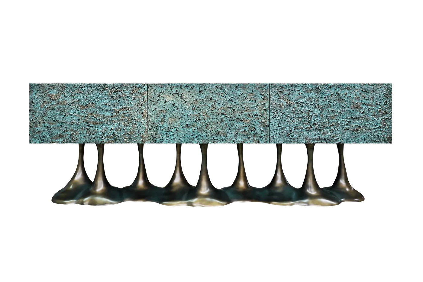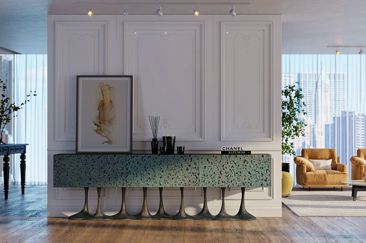 Его скульптурное основание, вдохновленное органическими формами природы, демонстрирует смелые линии и изящные изгибы, создавая визуально захватывающий дизайн. Основание отделано специальной эксклюзивной отделкой, которая добавляет глубину и характер к общей эстетике. Буфет имеет дверцы с текстурированной поверхностью, тщательно обработанные, чтобы вызывать чувство тактильной красоты и визуального интереса. Благодаря своей уникальной отделке и скрупулезному мастерству буфет Janus является свидетельством слияния искусства и функциональности.