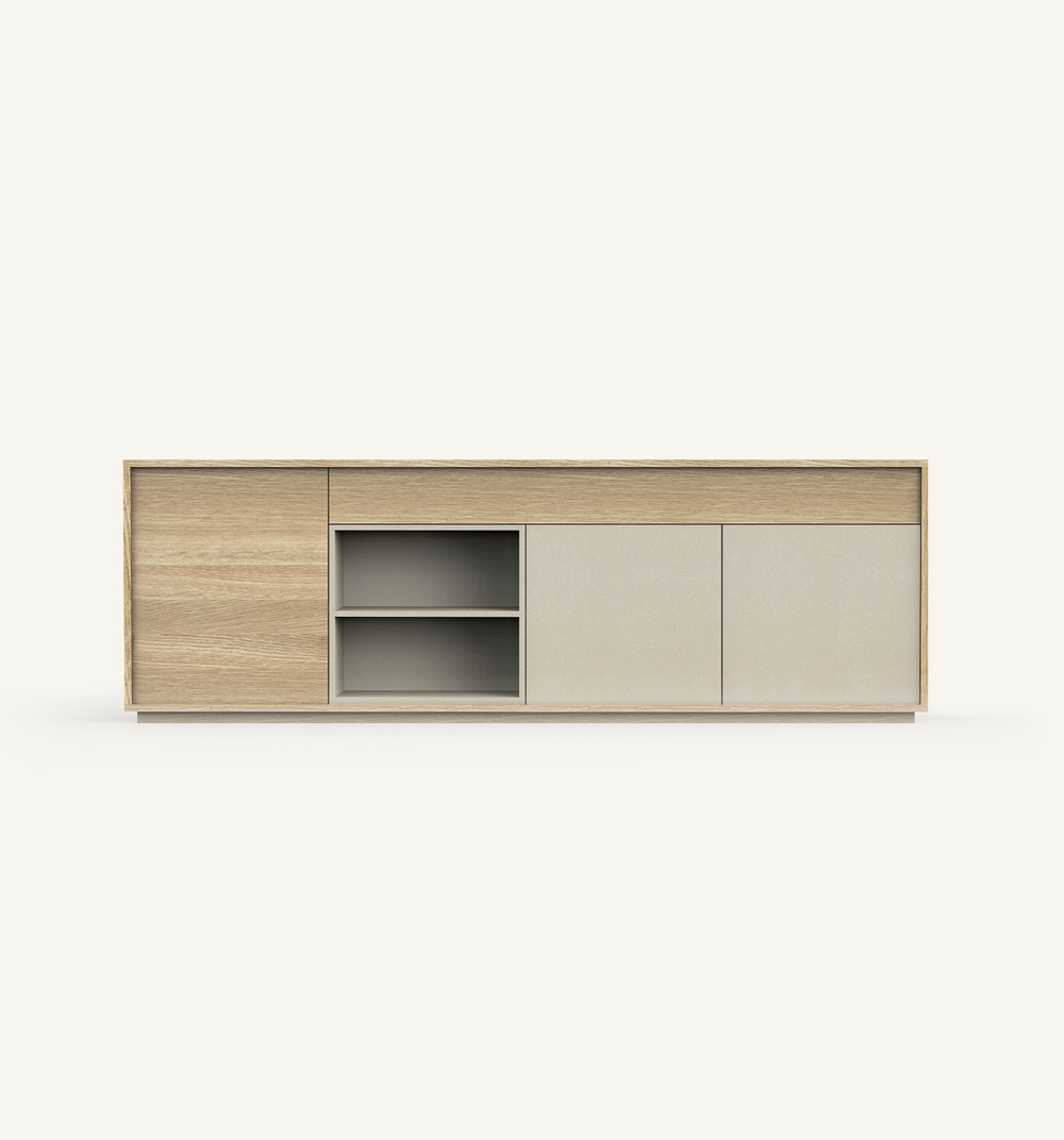 Дизайнерский комод с тремя дверцами Basic является разработкой творческой студии Expormim, которая создала оригинальную коллекцию мебели, сохранив естественный вид исходного материала. В дизайне мебели Basic главные акценты сделаны на чистоте линий и фактуре материалов, которая выступает основной ценностью предметов. Помимо этого, дизайнерская мебель Basic – это юзабилити, ведь по вкусу клиента, наполнение изделий может изменяться. В модули комода могут быть добавлены полки, при этом две полки всегда остаются открытые, что отличает данную модель от остальных.