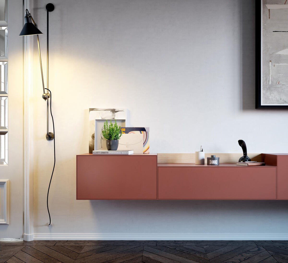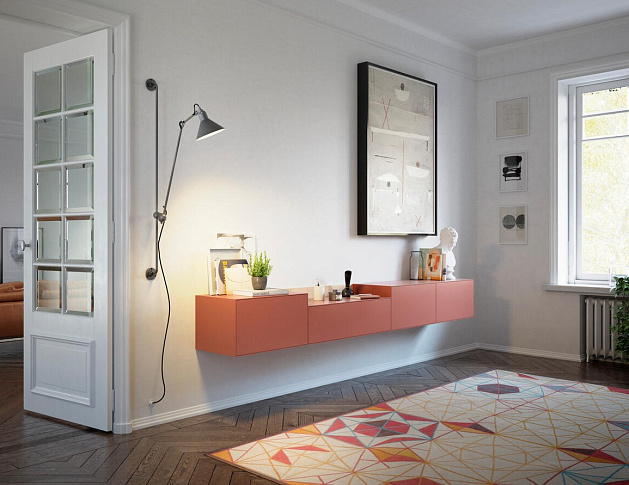 Настенный блок Lauki кирпичного цвета и натурального дуба