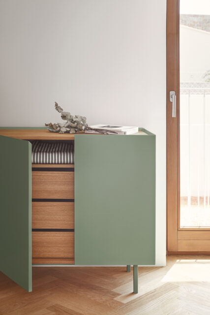 Создание формы Arista без ручек позволяет передать суть коллекции как особого элемента мебели, делая ее правильной, а не как самостоятельный предмет мебели, придавая ей эксклюзивный дизайн, который делает ее уникальной. Все двери оснащены амортизирующими петлями, что обеспечивает плавное и бесшумное закрывание. Крышка отделана шпоном натурального дуба. Корпус из МДФ покрыт лаком.