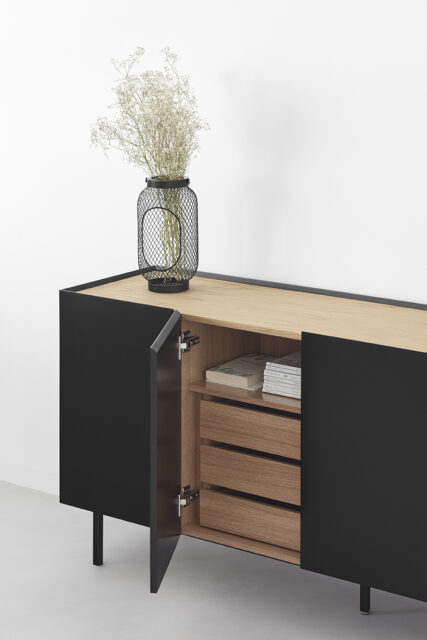 Создание формы Arista без ручек позволяет передать суть коллекции как особого элемента мебели, делая ее правильной, а не как самостоятельный предмет мебели, придавая ей эксклюзивный дизайн, который делает ее уникальной. Все двери оснащены амортизирующими петлями, что обеспечивает плавное и бесшумное закрывание. Крышка отделана шпоном натурального дуба. Корпус из МДФ покрыт лаком.