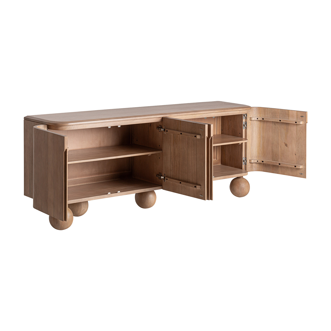 Буфет Bocksberg в современном стиле, изготовлен из светло-коричневого мангового дерева. Изделие разборное. Ширина: 210 см, Глубина: 45 см, Высота: 81 см