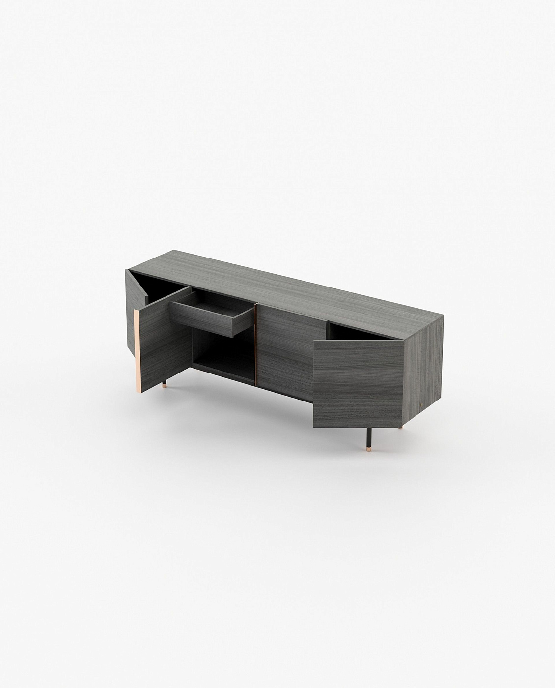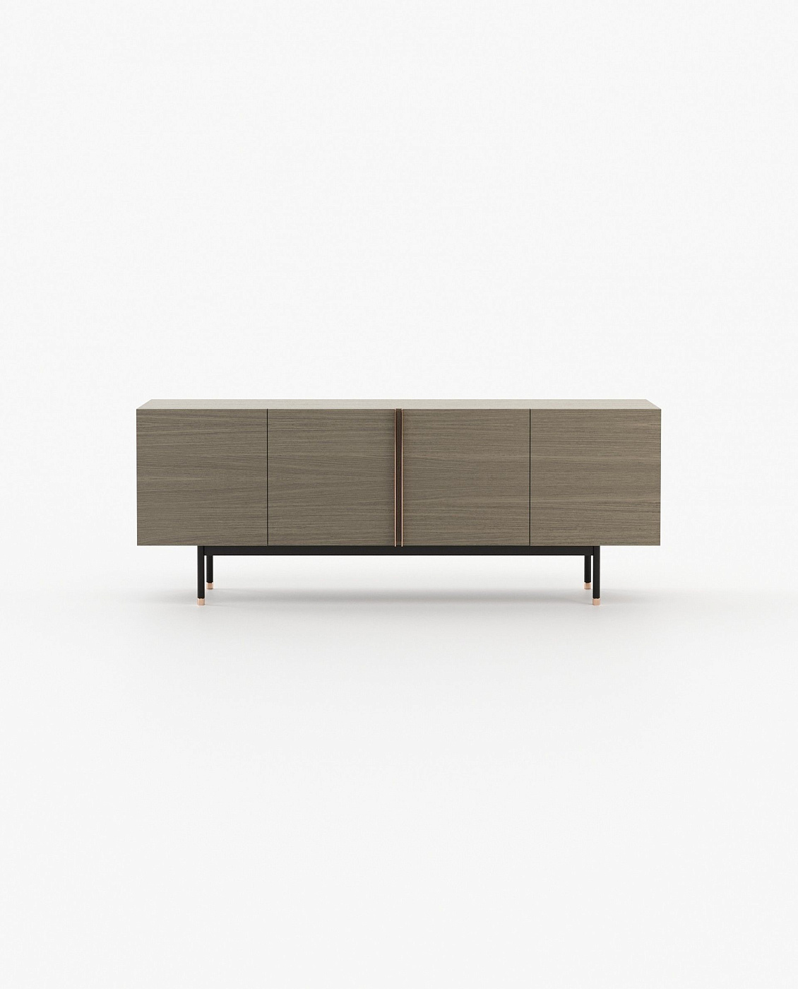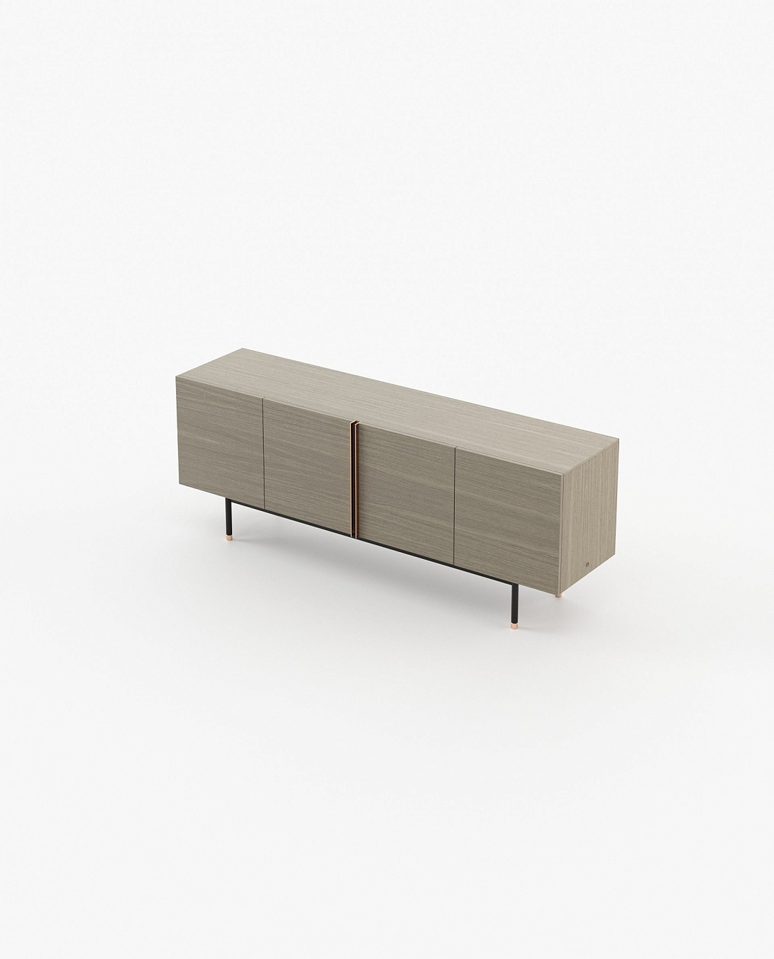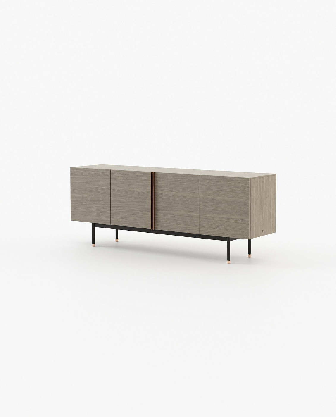 Буфет Cuba - это современное решение для хранения вещей, имеющее четыре дверцы с защелками и один внутренний выдвижной ящик.