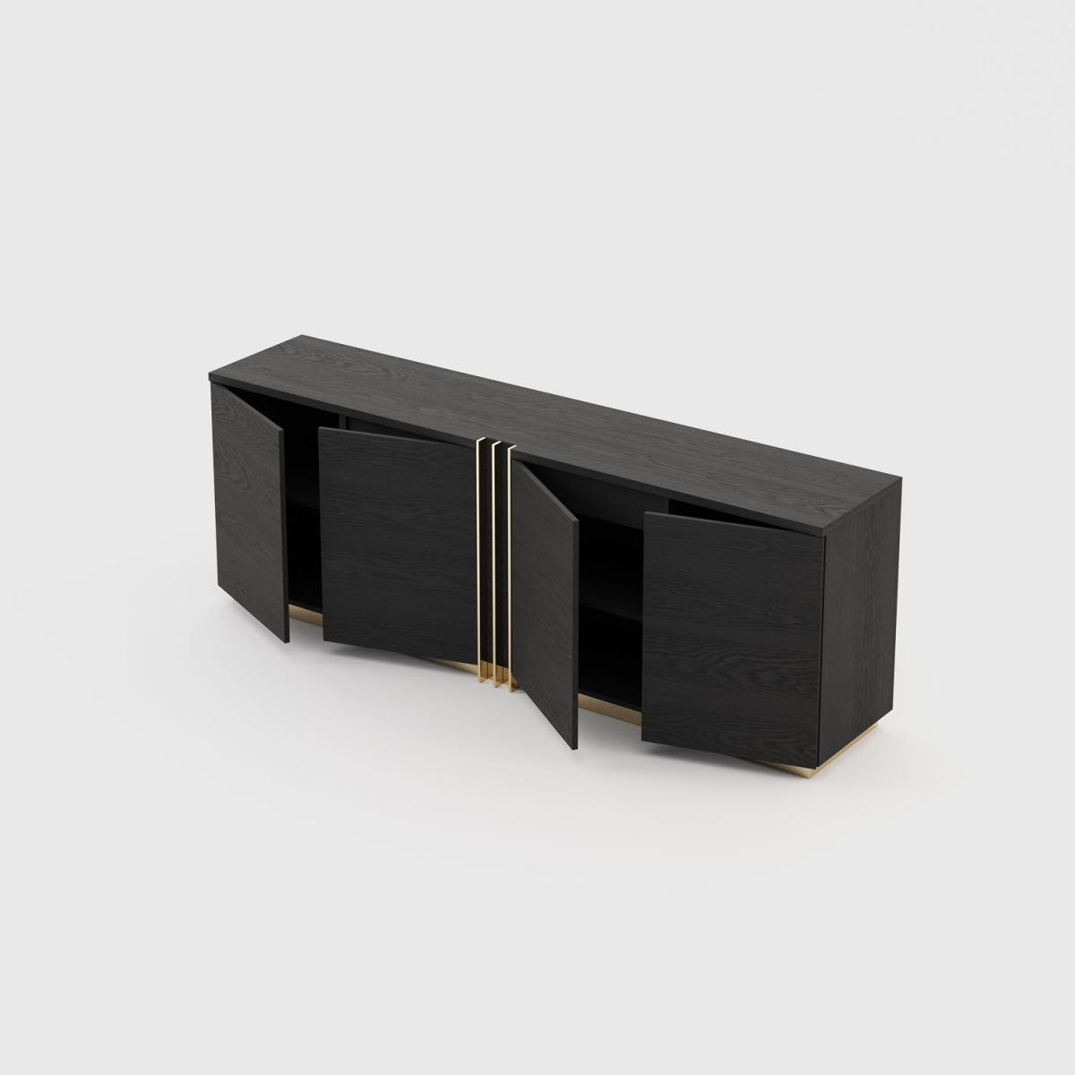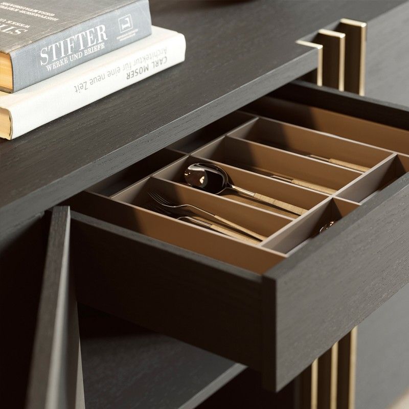 Сервант d'Arc-это деревянный сервант с металлическими деталями на ручках. С четырьмя дверцами и двумя выдвижными ящиками это потрясающая деталь дизайна интерьера, которая может выделиться в любом дизайне интерьера.