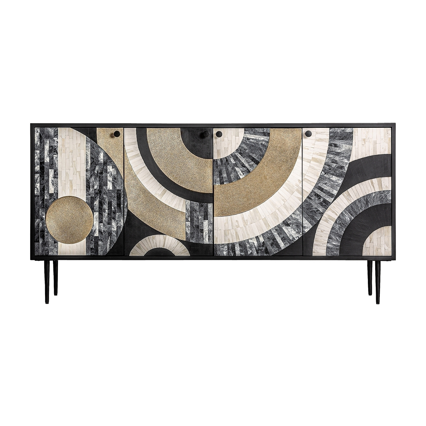В Daru Buffet от дома VICAL искусство и функциональность сливаются воедино. Этот буфет, вдохновленный дизайном ар-деко и изготовленный из железа, выделяется трехцветной палитрой: черным, белым и золотым. Детали из смолы и латуни добавляют дополнительную изысканность. Буфет Daru в стиле арт-деко – это не только функциональный предмет мебели, но и произведение искусства, которое притягивает взгляды и дополняет любую обстановку своим уникальным дизайном. Мастерская вещь для стильного дома.