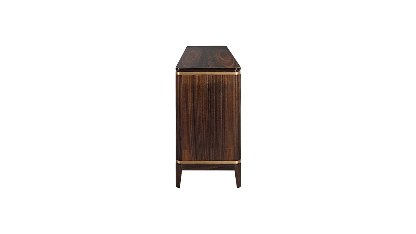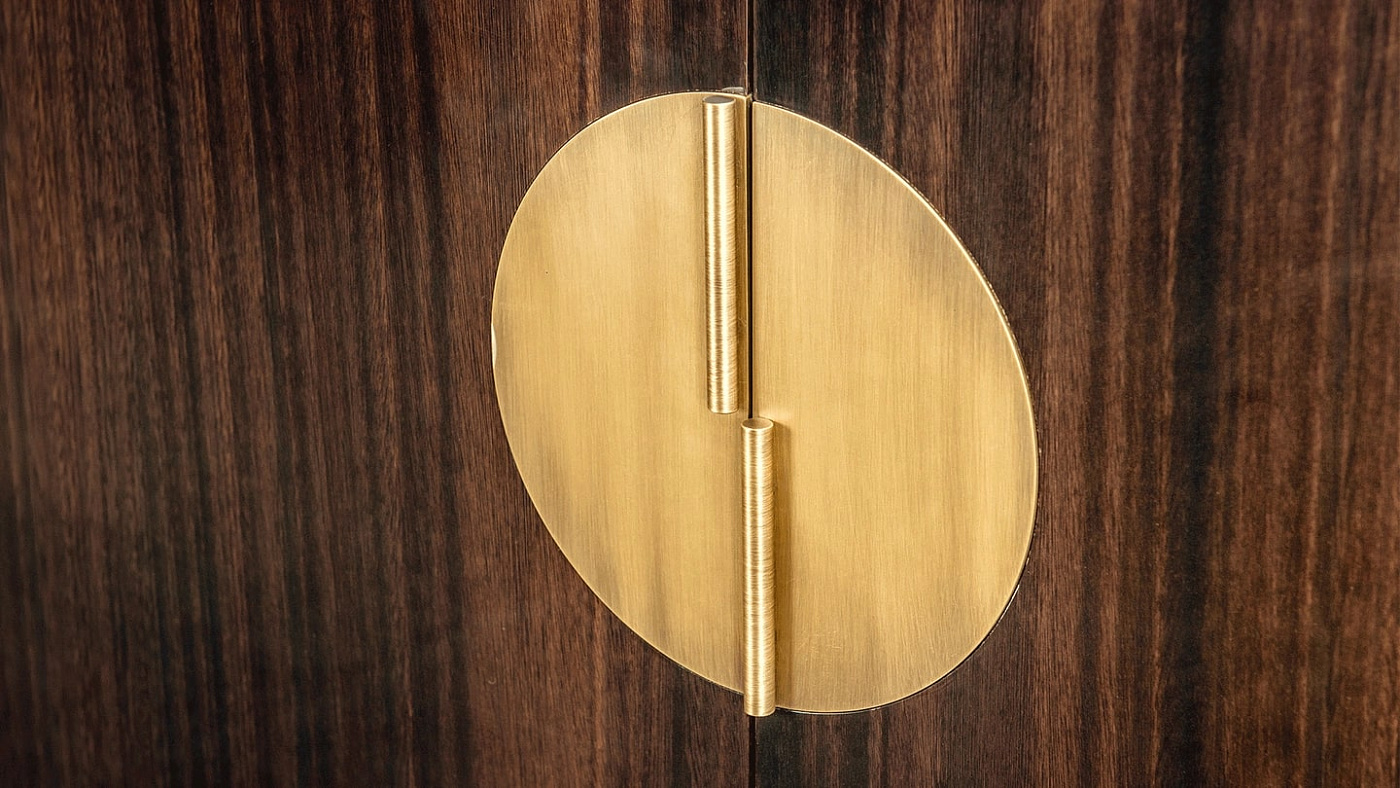 Классический сервант BILBAO, сочетающий в себе неподвластный времени силуэт и всего два роскошных материала, подчеркивает присущую ему красоту шпона темного дерева с глубокими прожилками и мерцающей матовой латуни. Конструкция, обеспечивающая достаточно места для хранения, скрывает беспорядок за двумя комплектами двойных дверей.
