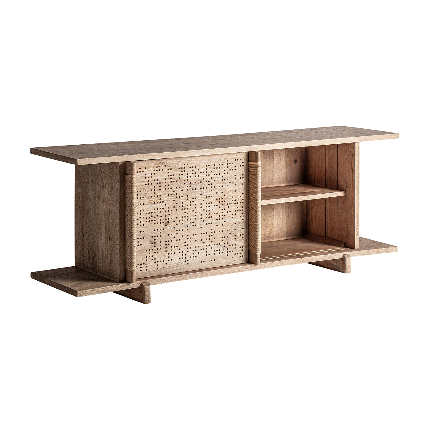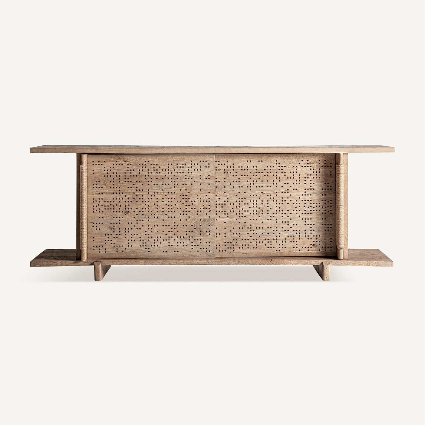 Комод JACQUARD, разработанный Estudi(H)ac для VICALDESIGN, изготовлен из светло-коричневого мангового дерева. Он переосмысливает классический дизайн в современном ключе, балансируя пропорции, текстуру и функциональность. Ширина: 220 см, Глубина: 54 см, Высота: 73 см