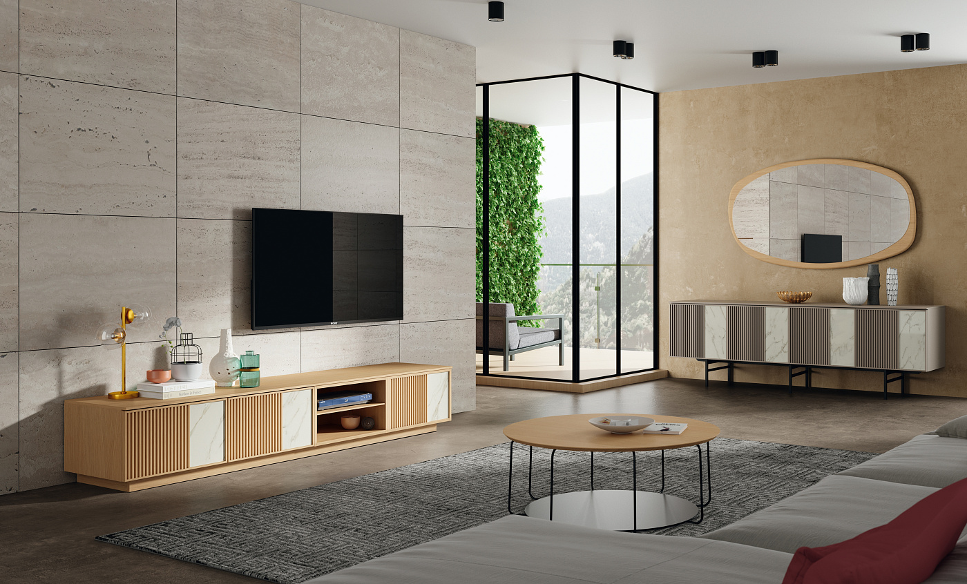 Поиск актуальности в благородных материалах привел к этой идее, которая служит простой рамой и открывает широкий спектр возможностей. На этом базовом элементе присутствует постоянный ритм решетки, который играет с некоторыми отделками и текстурами из этой очень универсальной и динамичной коллекции.