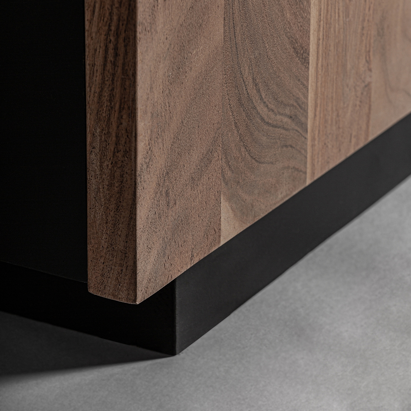 Буфет Kerken от VICAL сочетает в себе глубину чёрного цвета и теплоту коричневого железа в стиле ар-деко, выделяясь своей элегантной простотой. Каркас из акации обеспечивает прочность и текстуру, идеально подходящую для интерьеров с особым шармом. Ширина: 220 см, Глубина: 44 см, Высота: 81 см