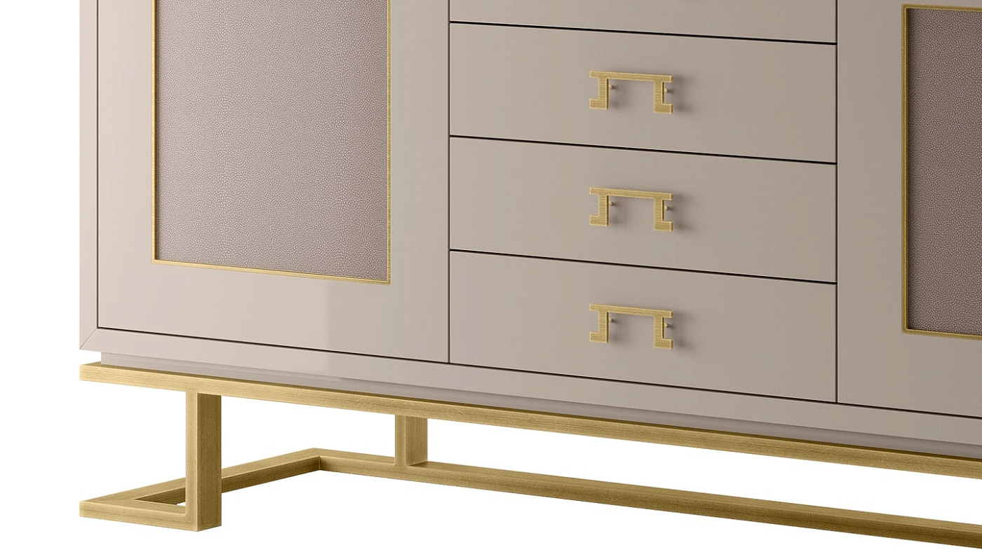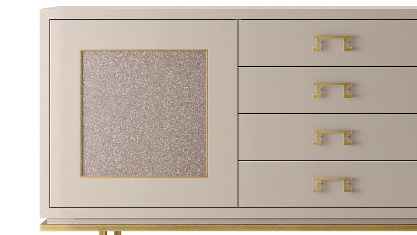 Являясь эволюцией нашего серванта NAJA, NAJA II объединяет в своем обтекаемом силуэте четыре выдвижных ящика и две дверцы. Элементы декора включают оригинальные ручки, кожаные вставки и скульптурное основание, плавно выполненное из матовой латуни.