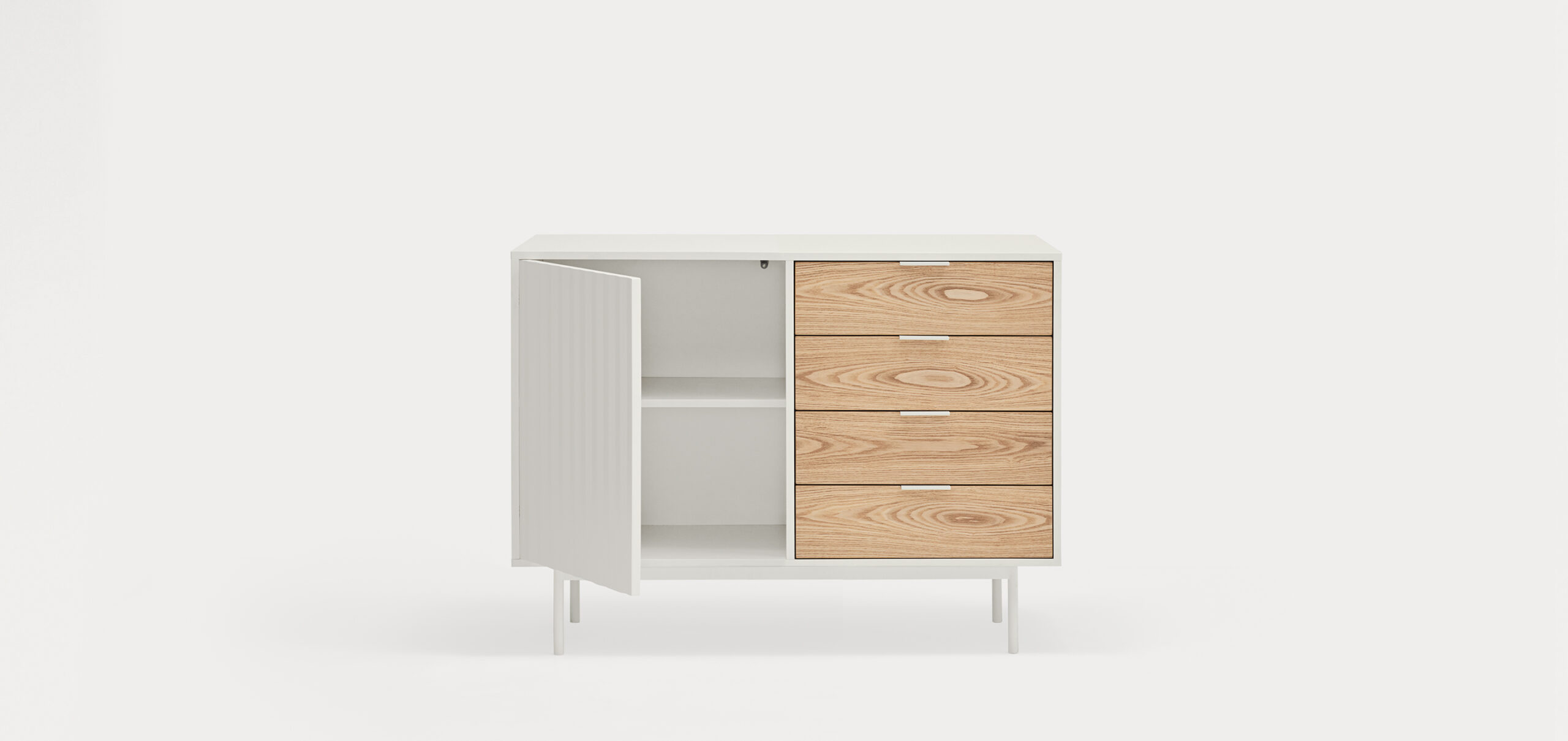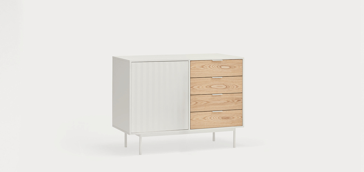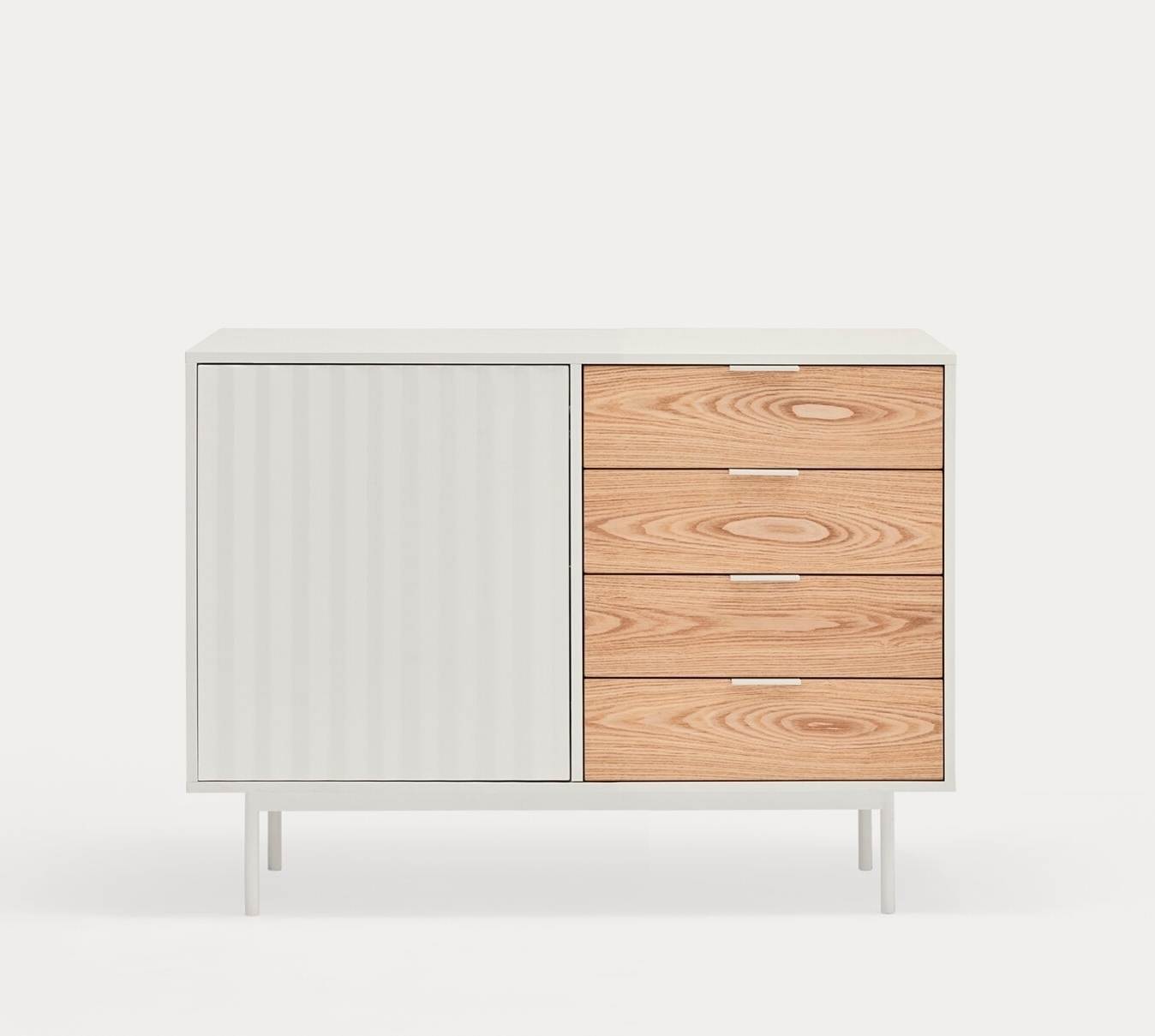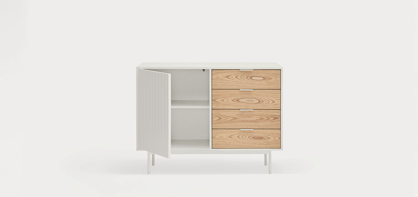 Самая большая особенность серванта Sierra - это особенность его текстур и форм, которые по-разному взаимодействуют в зависимости от окружающей среды. На передней части этого предмета мебели нанесен особый рельефный рельеф из коллекции. Он выполнен в лакированном корпусе МДФ разных цветов и включает в себя открывание и закрывание дверей нажатием. Он оснащен регулируемой опорной ножкой, которая идеально подходит для любых неровностей пола.