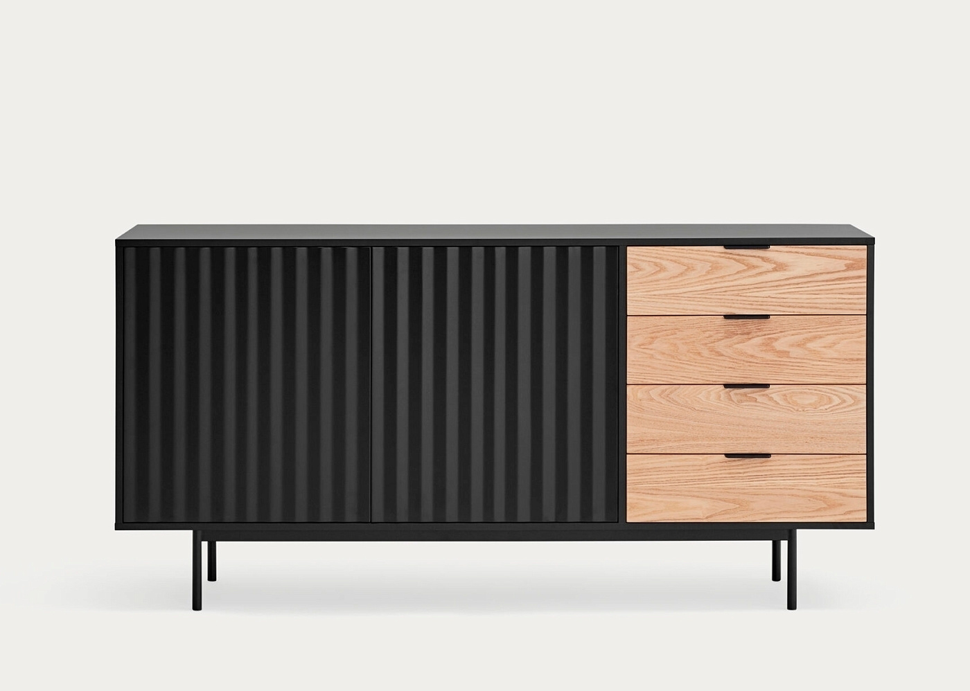 Самая большая особенность серванта Sierra - это особенность его текстур и форм, которые по-разному взаимодействуют в зависимости от окружающей среды. На передней части этого предмета мебели нанесен особый рельефный рельеф из коллекции. Он выполнен в лакированном корпусе МДФ разных цветов и включает в себя открывание и закрывание дверей нажатием. Он оснащен регулируемой опорной ножкой, которая идеально подходит для любых неровностей пола.