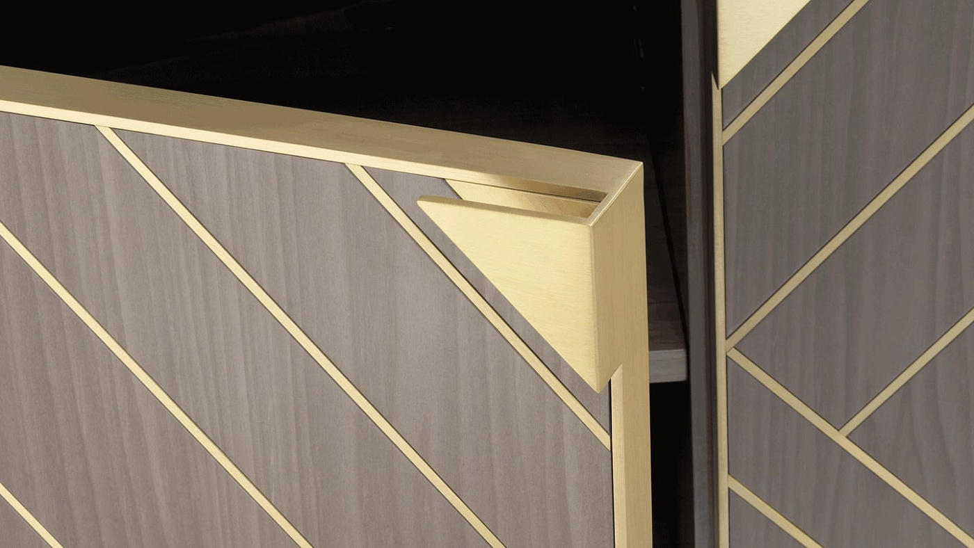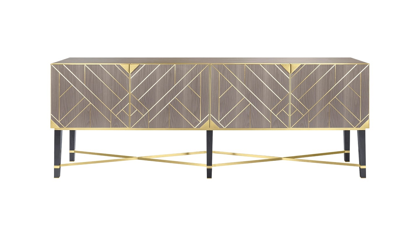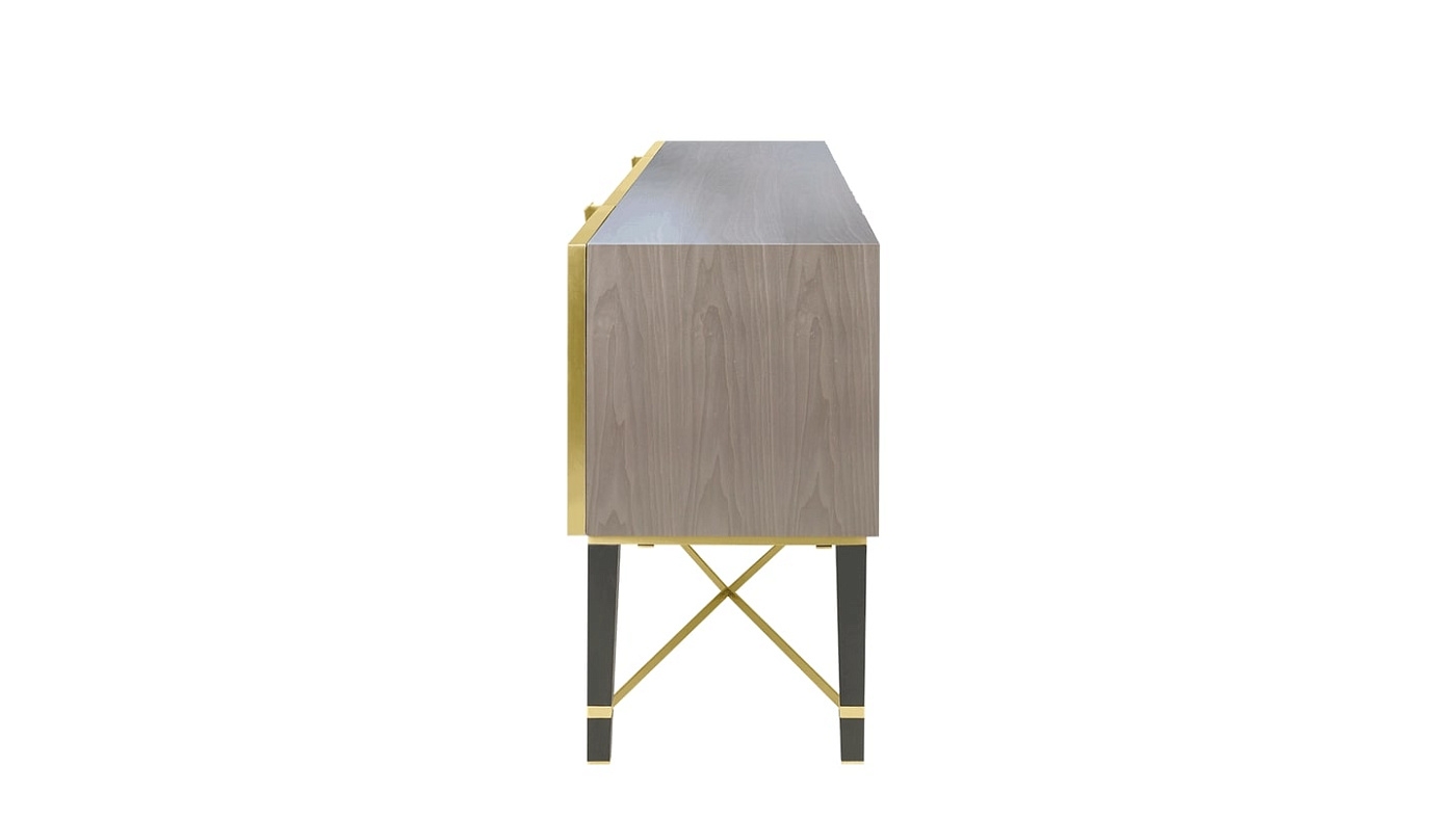 Сервант SIRMIONE превращает сказочное в функциональное хранилище благодаря фасаду в стиле ар-деко и характерному металлическому каркасу, создающему вневременной взгляд на гламур старого света.