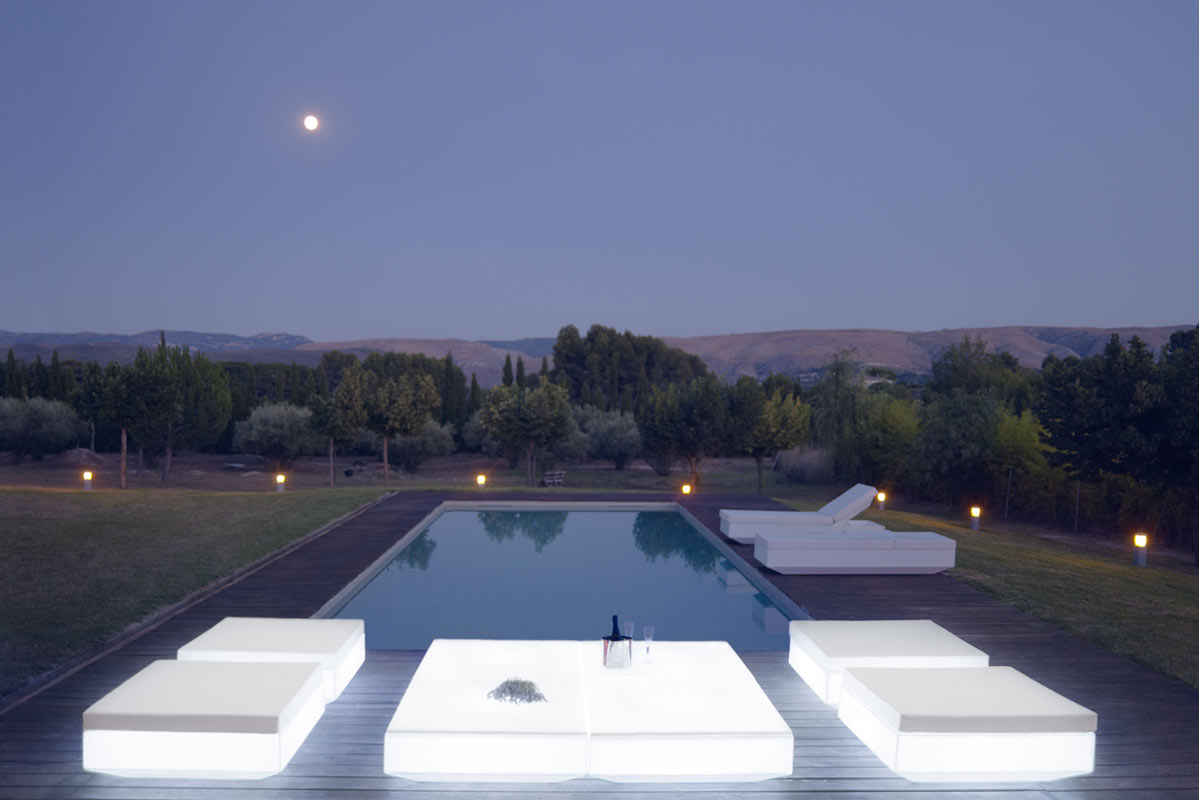 Коллекцию Vela для компании Vondom создал один из ведущих испанских дизайнеров – Рамон Естеве (Ramon Esteve). Основным элементом дизайна этой коллекции являются простые геометрические формы, а фирменный стиль Рамона Эстеве обнаруживает себя в идеальных пропорциях каждого предмета. В коллекцию Vela входят модульный диван, кресло, столик, пуф, шезлонг, различные кашпо, барная стойка и стулья к ней. Несмотря на то, что коллекция получилась достаточно объемной, центральное место в ней занимает все же диван, который благодаря модульной конструкции способен вписаться в любое пространство, а внутренняя подсветка превращает его из предмета мебели в элемент архитектурного освещения.
