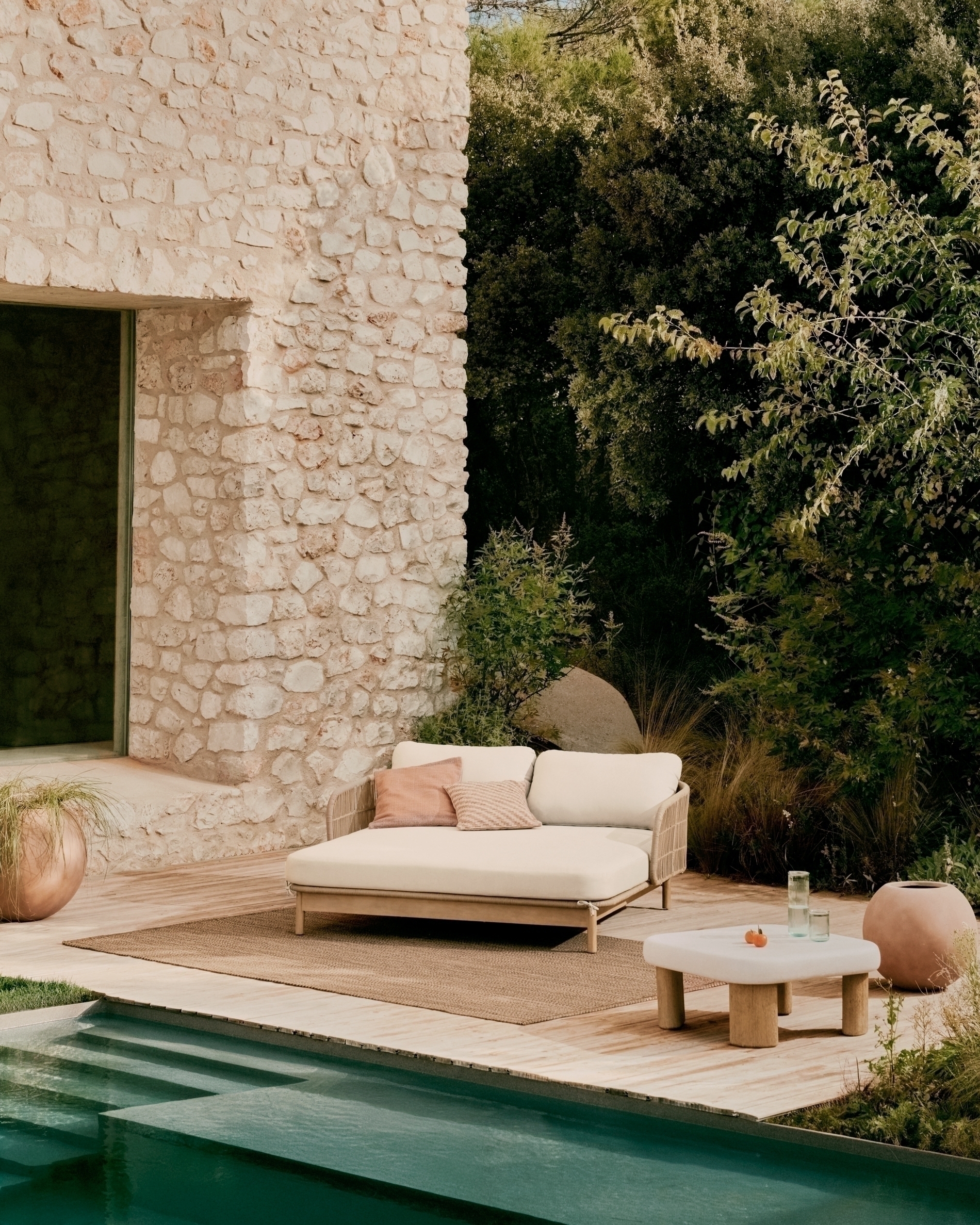 Двухместный шезлонг Catalina из бежевого шнура и массива акации