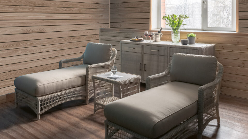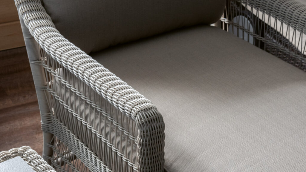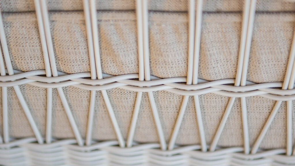 Модель с закруглёнными формами и полупрозрачным кружевным плетением, придающим всей коллекции лёгкость и воздушность. Прекрасный образец смешения двух стилей легко становится украшением пространства как внутри, так и снаружи дома